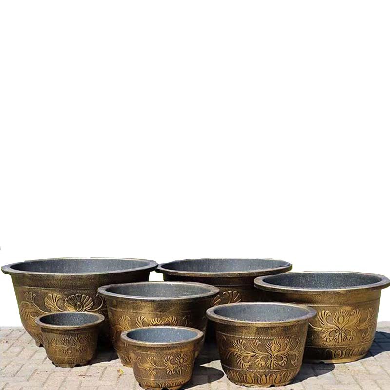 청동 두꺼운 수지 큰 나무를위한 옥외 특별한 화분 구멍이있는 둥근 알루미늄 플라스틱 화분 비 다공성 수경 화분