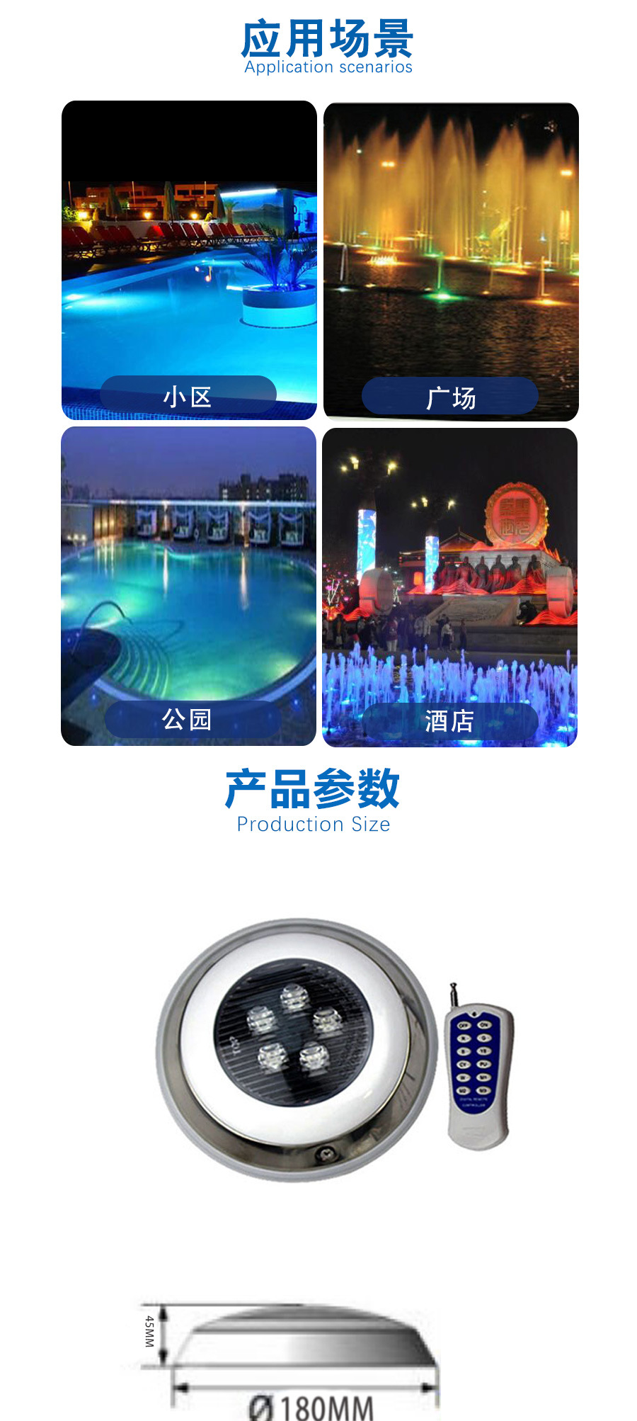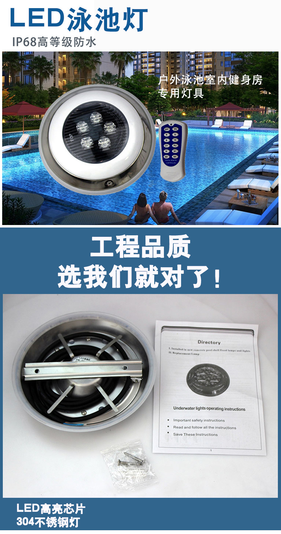 빌라 스퀘어 수영장 측면 벽 특수 미니 304 스테인레스 스틸 수영장 조명 수중 조명
