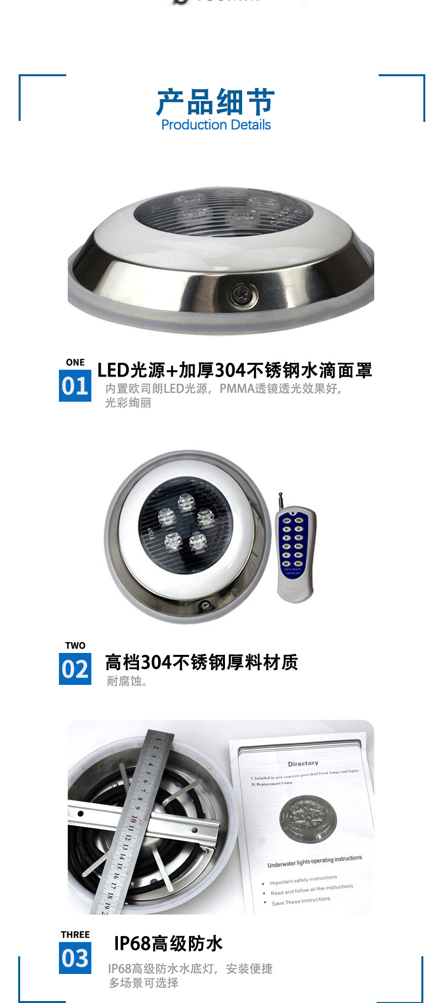 빌라 스퀘어 수영장 측면 벽 특수 미니 304 스테인레스 스틸 수영장 조명 수중 조명스토어 가기