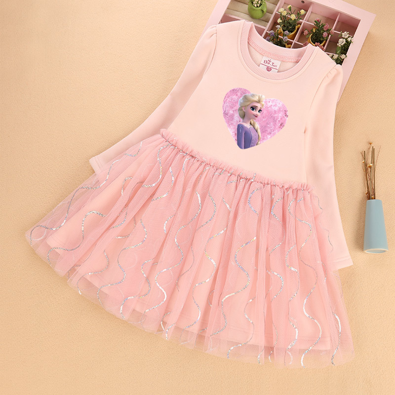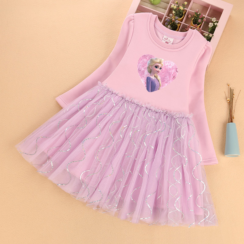 엘사 핑크 기모 스커트 소녀 겨울 2022 새로운 스타일 서양 스타일 공주 스커트 아기 소녀 긴 소매 스팽글 스커트