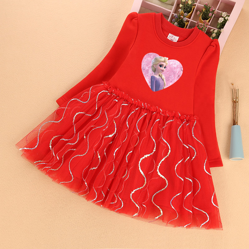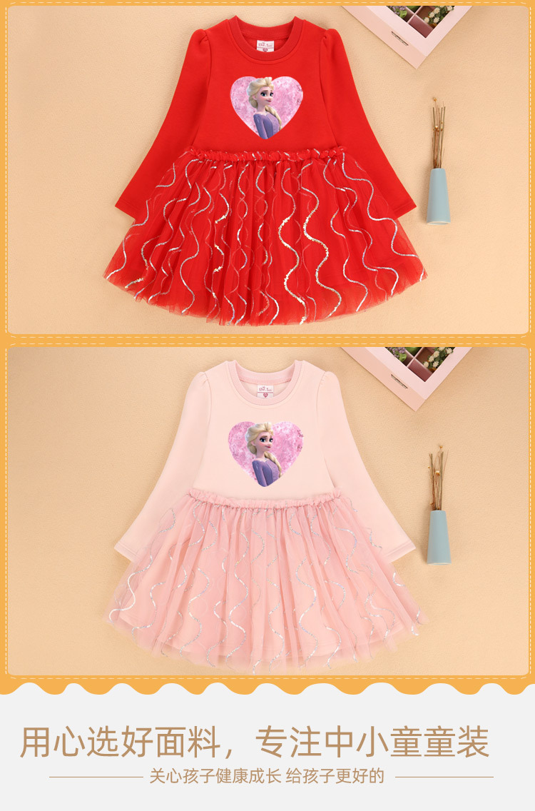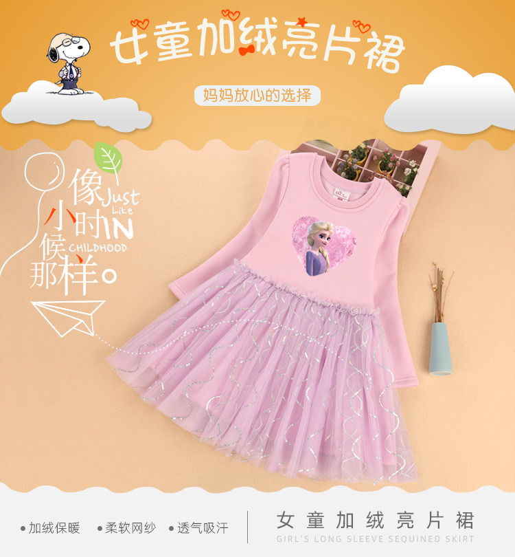 엘사 핑크 기모 스커트 소녀 겨울 2022 새로운 스타일 서양 스타일 공주 스커트 아기 소녀 긴 소매 스팽글 스커트스토어 가기