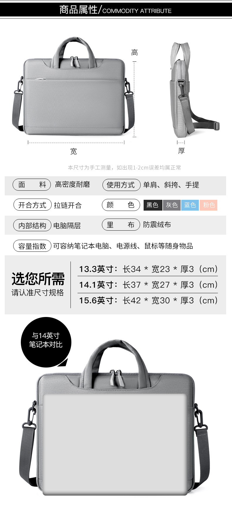 공장 도매 15.6 인치 컴퓨터 가방 남성과 여성의 휴대용 13.3 인치 14.1 인치 노트북 가방 숄더백