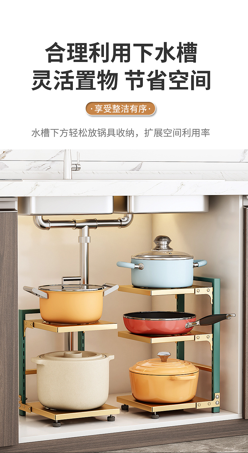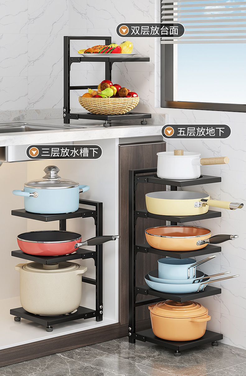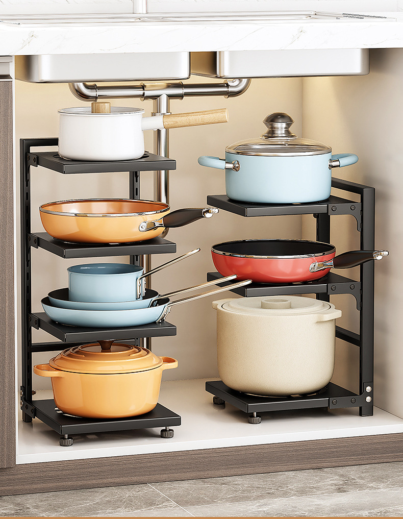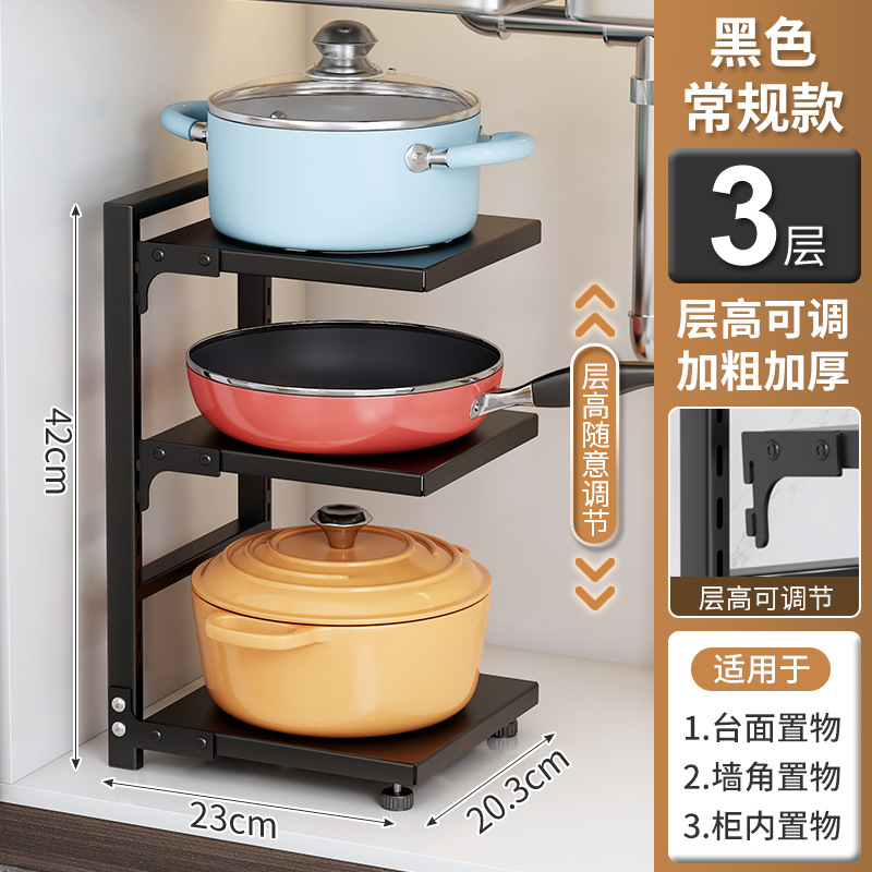 국경을 넘는 탄소강 다층 냄비 선반, 조절 가능한 싱크대 상판 캐비닛 다층 냄비 선반, 주방 수납 선반스토어 가기