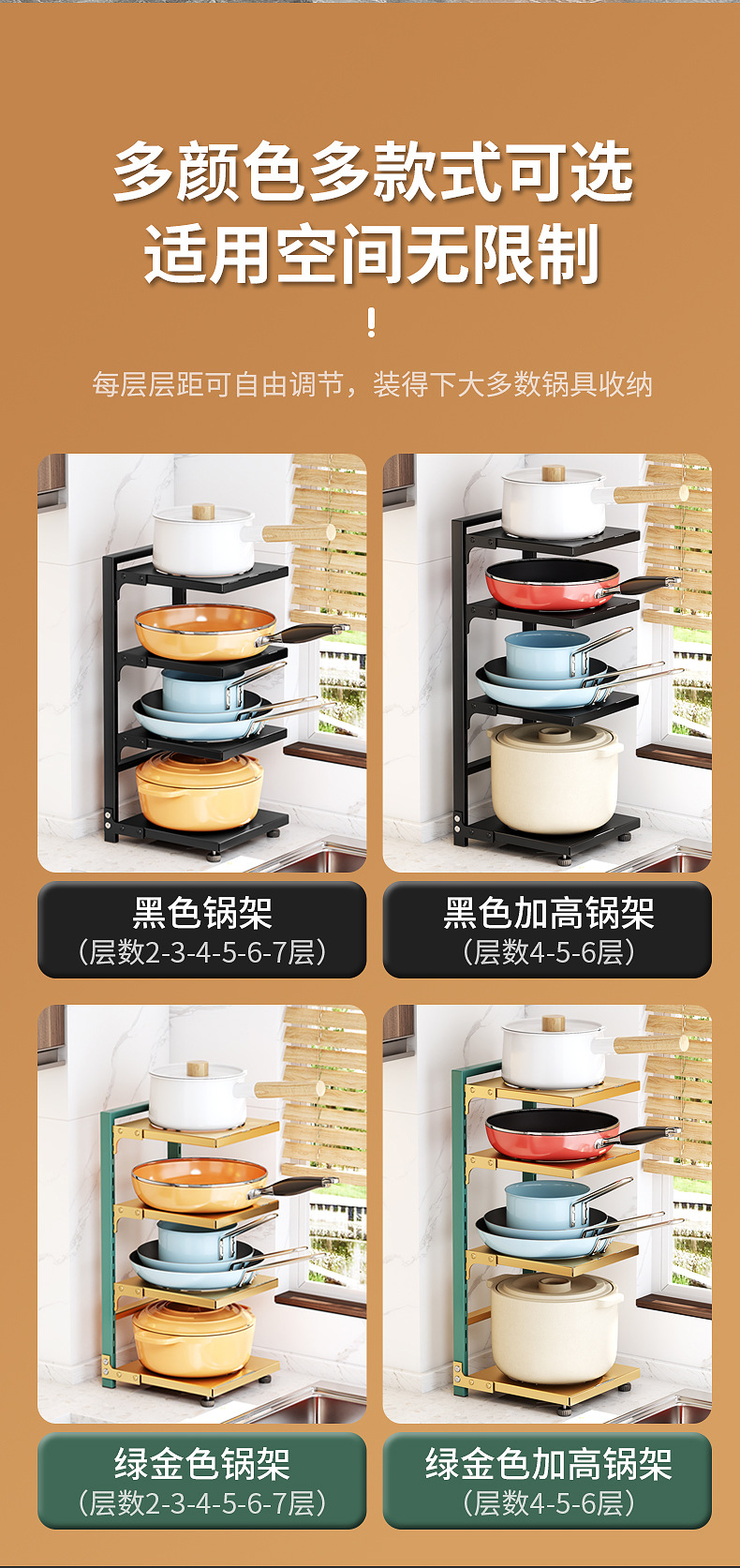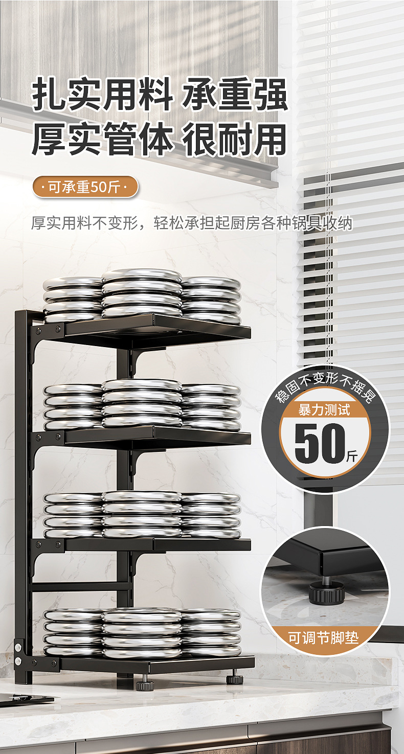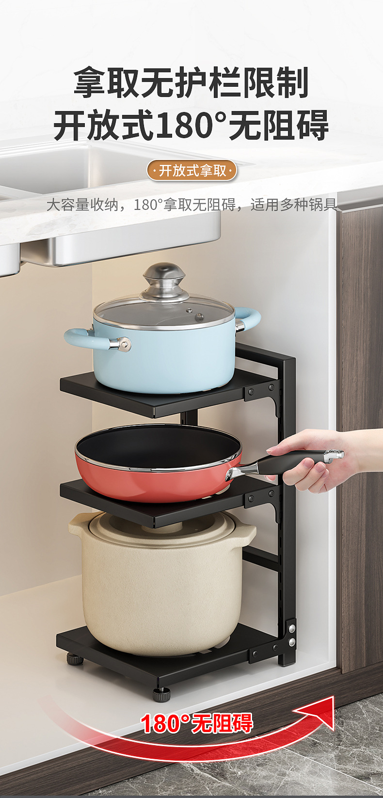 국경을 넘는 탄소강 다층 냄비 선반, 조절 가능한 싱크대 상판 캐비닛 다층 냄비 선반, 주방 수납 선반스토어 가기