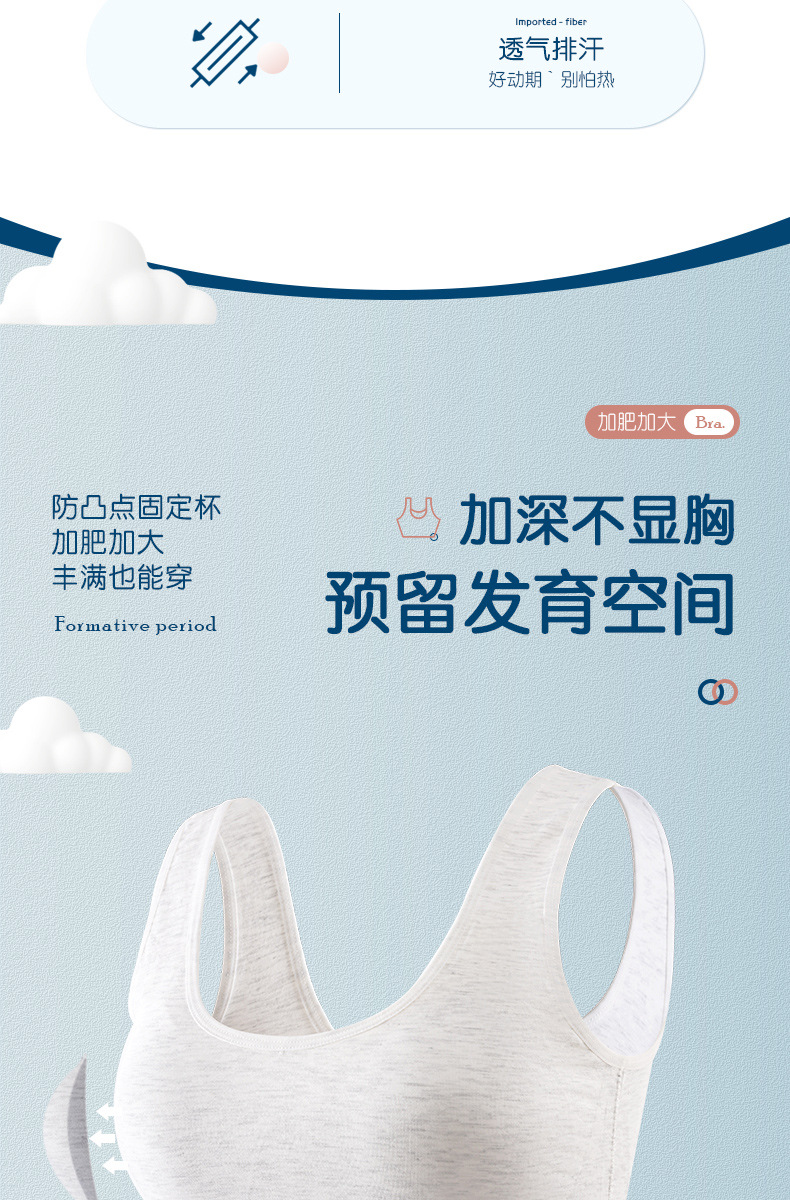 넓은 어깨와 아름다운 등 학생 스틸 링 고정 컵 여아 순면 스포츠 브라 없이 걷기 방지 원활한 비료스토어 가기