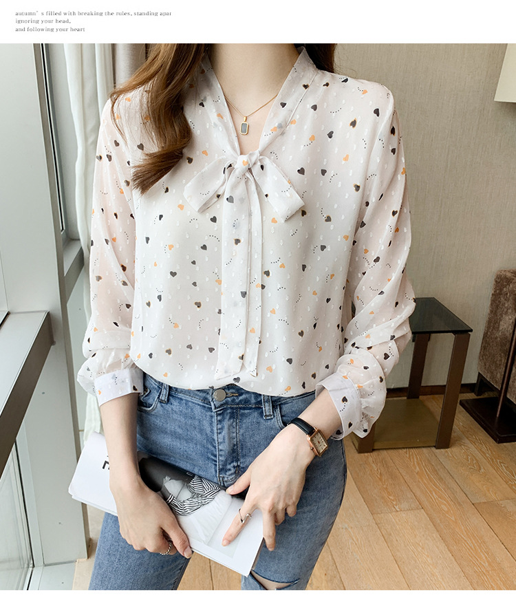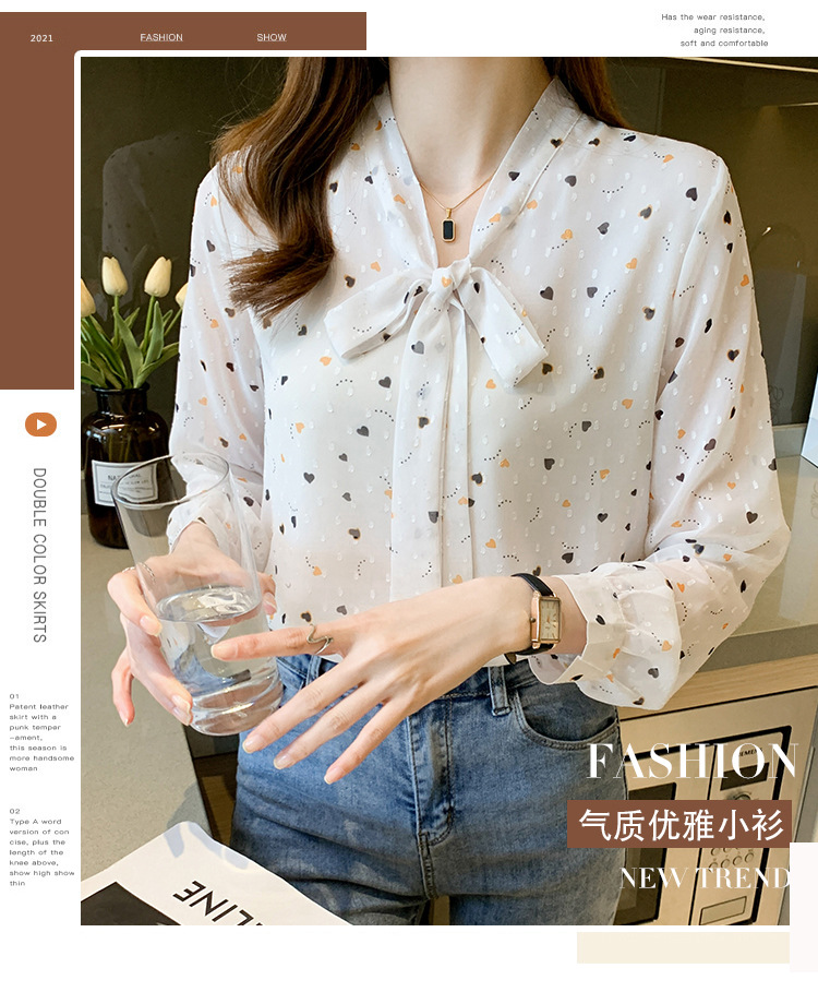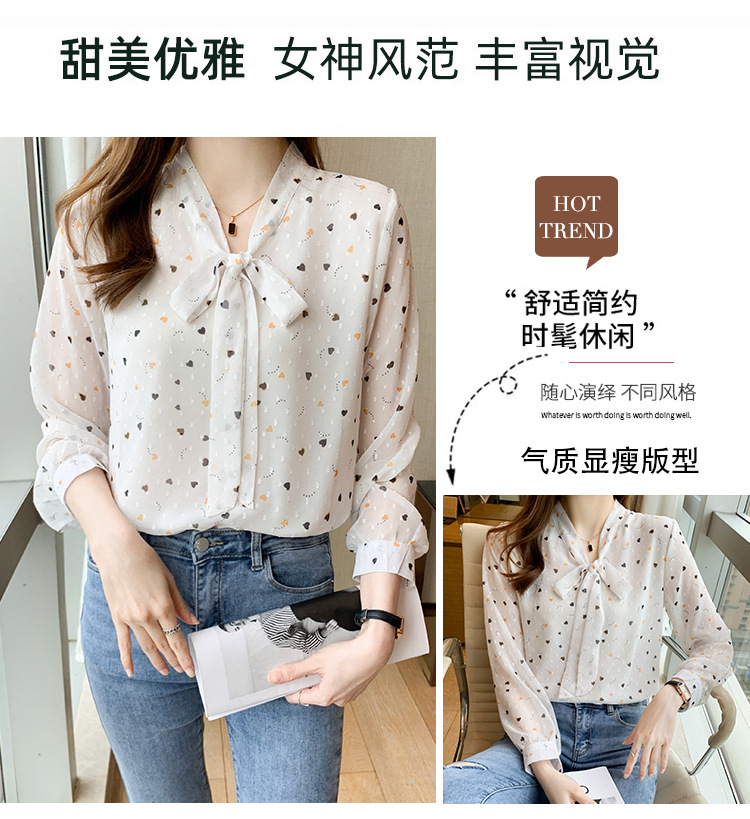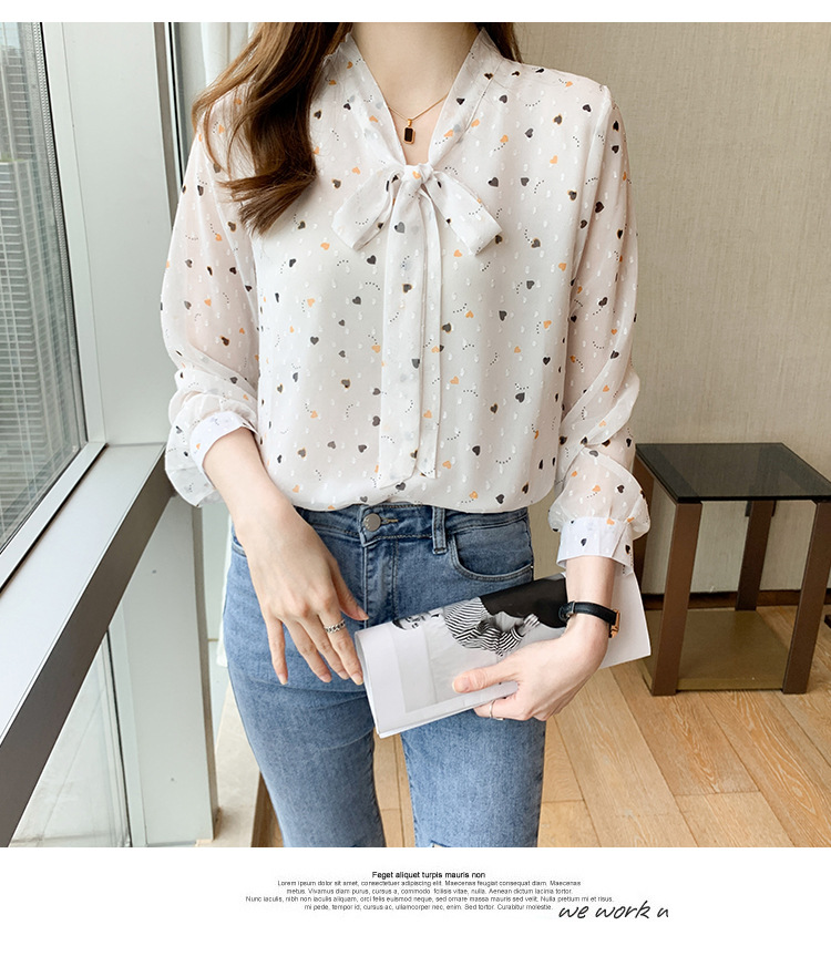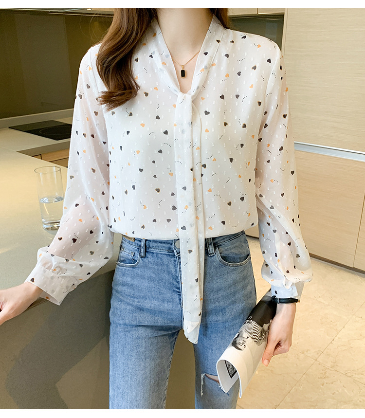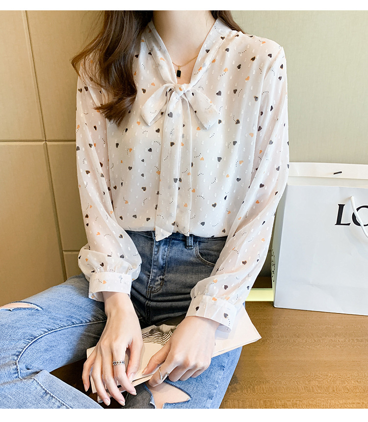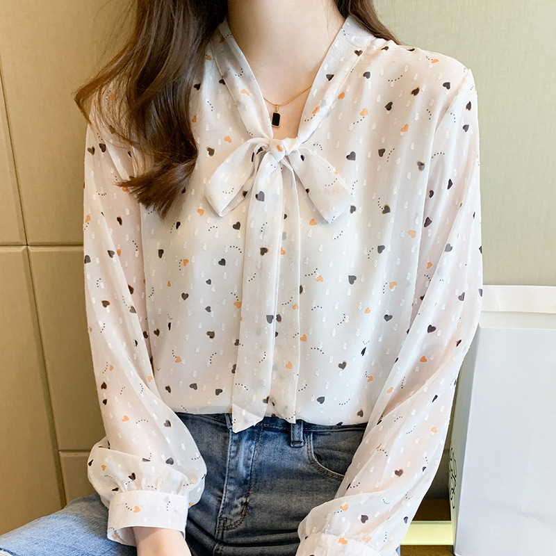 화이트 플로럴 쉬폰 셔츠 여성용 보우 스몰 셔츠 봄 2023 새로운 배꼽 덮기 슬림 탑 베이스 셔츠 겉옷스토어 가기