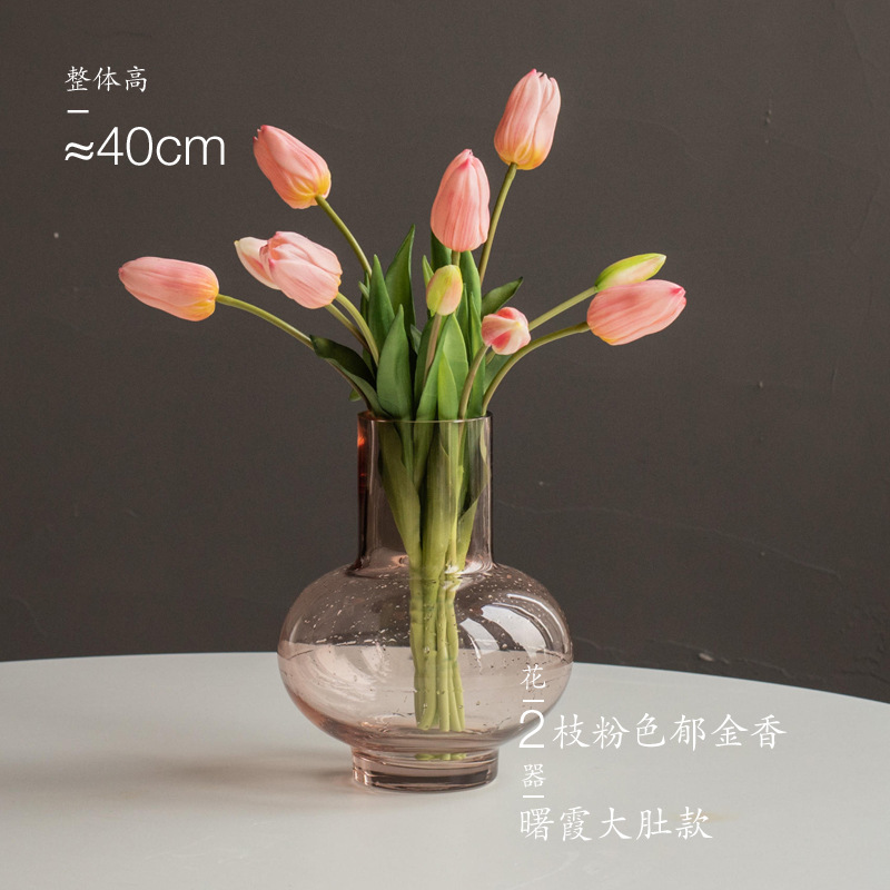 인터넷 연예인 투명 유리 큰 배꼽 꽃병 장식품 거실 꽃 배열 식탁 튤립 꽃 수경 맑은 그림자