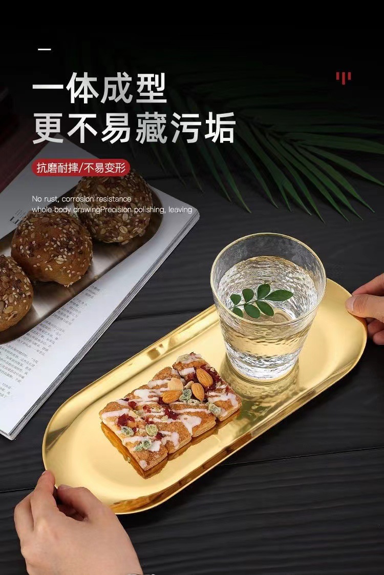 북유럽 스테인리스 접시 타원형 수건 접시 레스토랑 보석 보관 접시 평평한 금색 작은 트레이 다용도 트레이스토어 가기