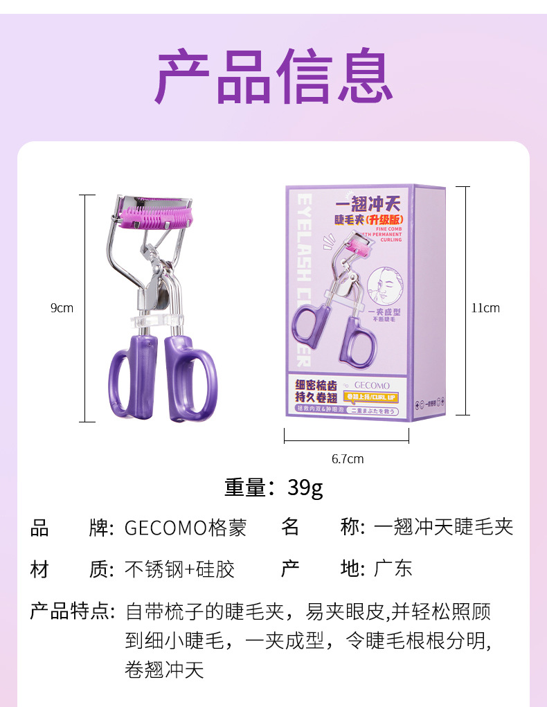 GECOMO 속눈썹 경기자 내츄럴 컬 속눈썹 빗 속눈썹 경기자 지속 스테레오 타입 와이드 앵글 속눈썹