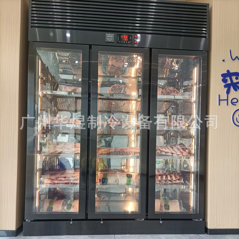 3 도어 블랙 하이 바디 쇠고기 캐비닛 쇠고기 스테이크 사워 캐비닛 젖은 익은 캐비닛 및 쇠고기 냉동고 신선한 냉장고 캐비닛