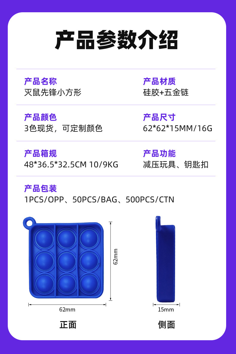 공장 맞춤형 쥐퇴치 퍼포머 버블 키체인 스트레스 해소 장난감 미니 펜던트 푸시형 작은 사각 키체인스토어 가기