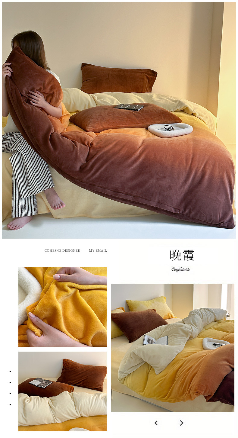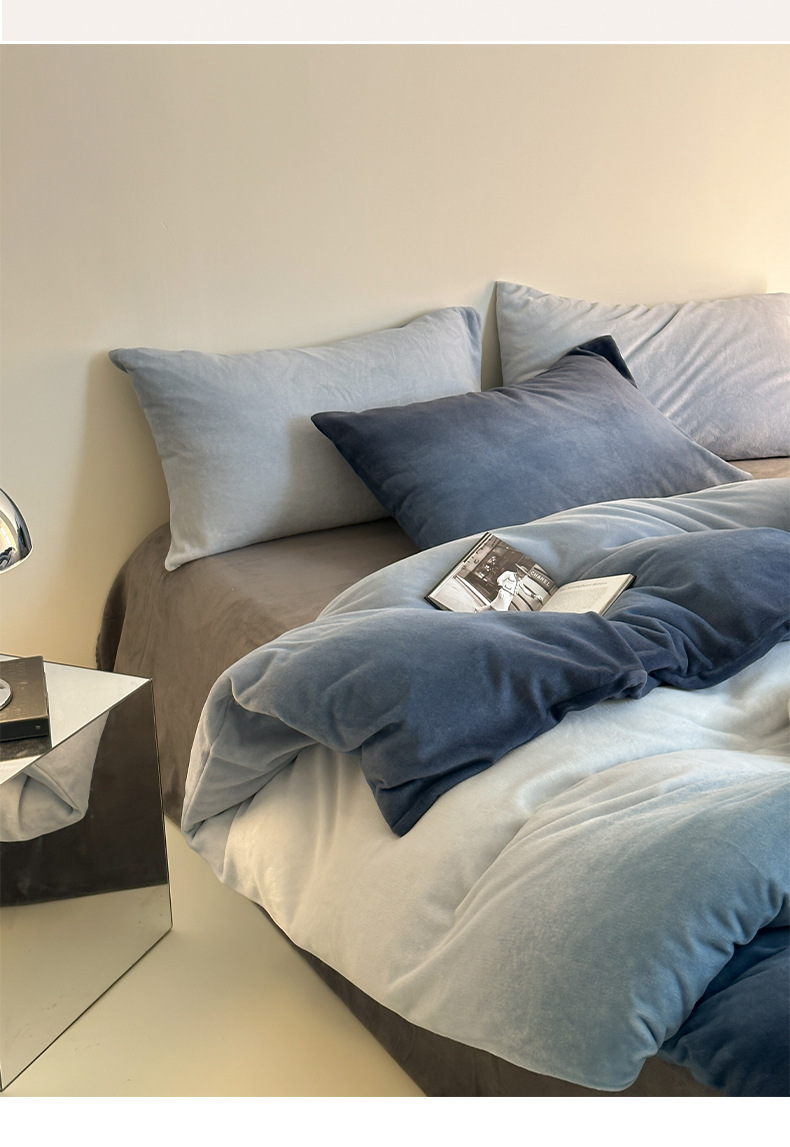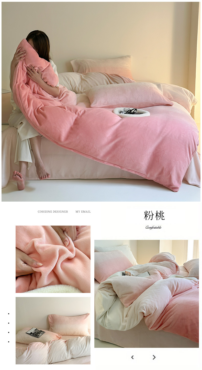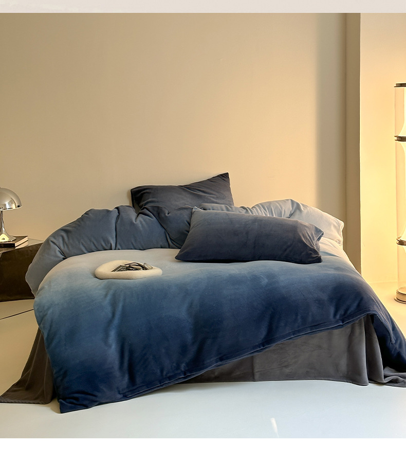 새로운 두꺼운 겨울 그라데이션 밀크 벨벳 4 피스 세트 단색 바람 침대 모자 4 피스 세트 Nantong 홈 섬유 도매