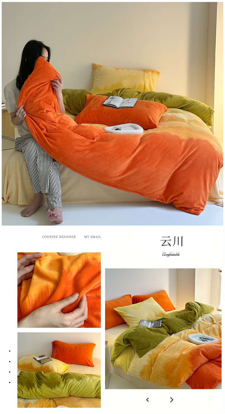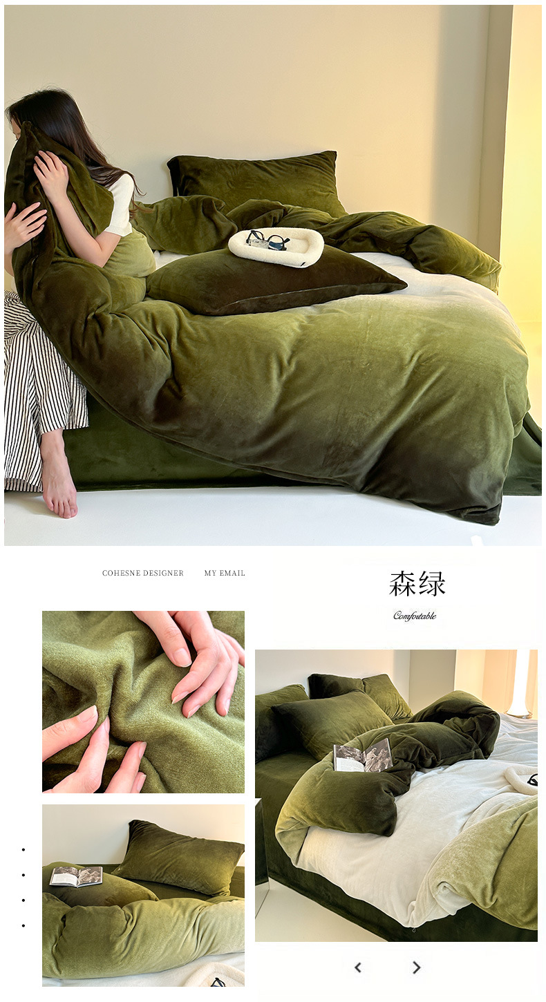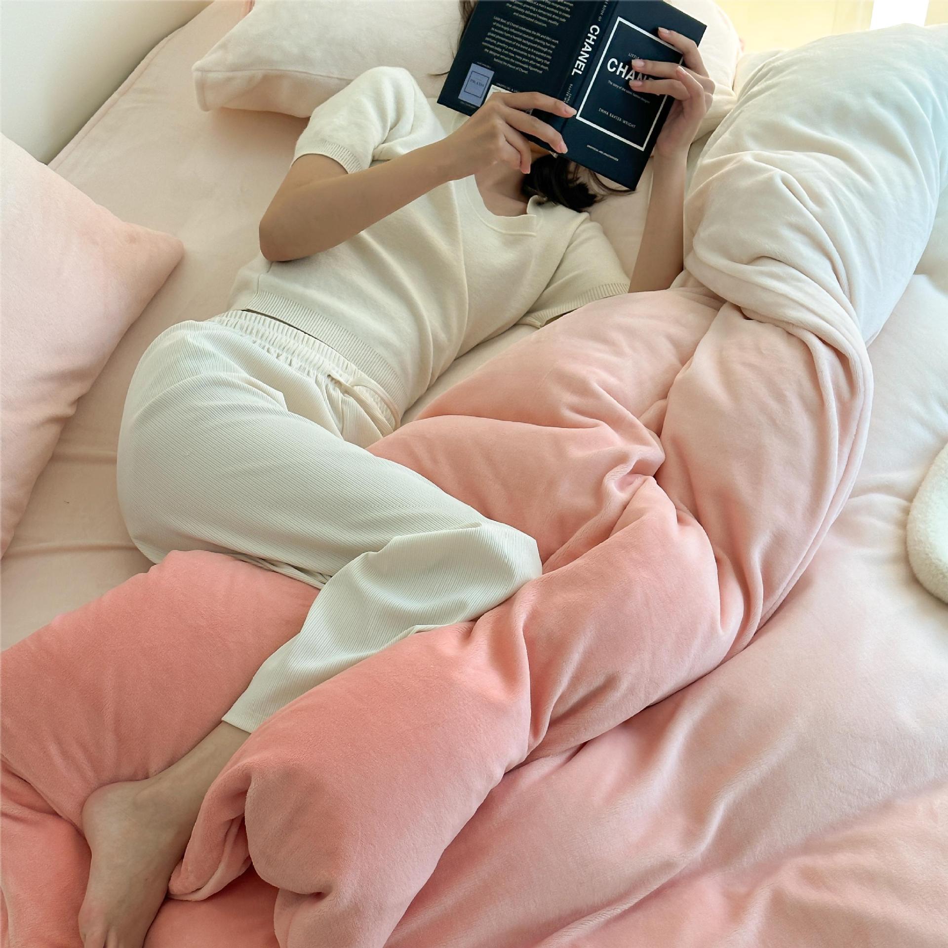 새로운 두꺼운 겨울 그라데이션 밀크 벨벳 4 피스 세트 단색 바람 침대 모자 4 피스 세트 Nantong 홈 섬유 도매