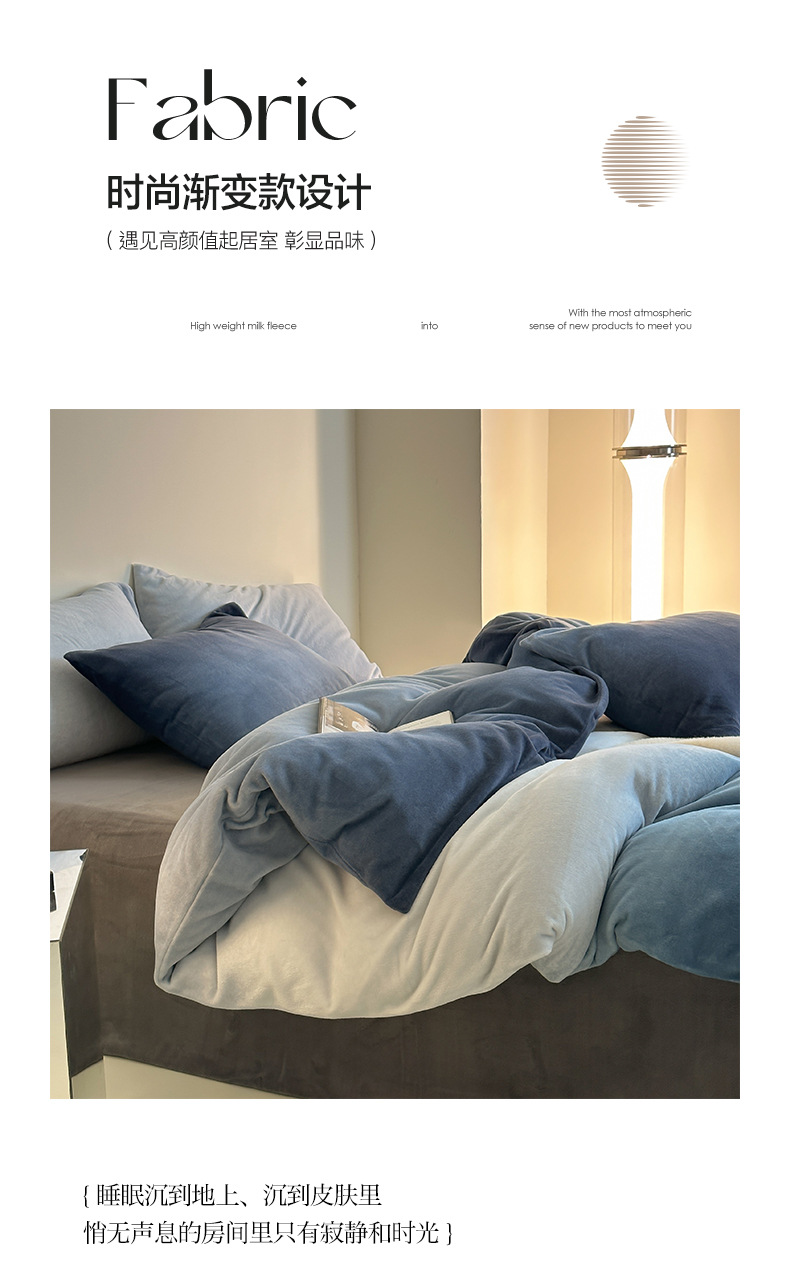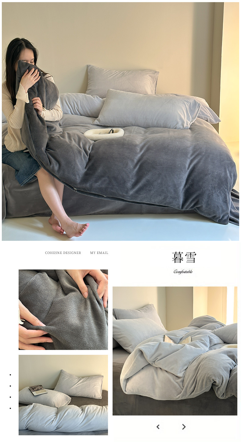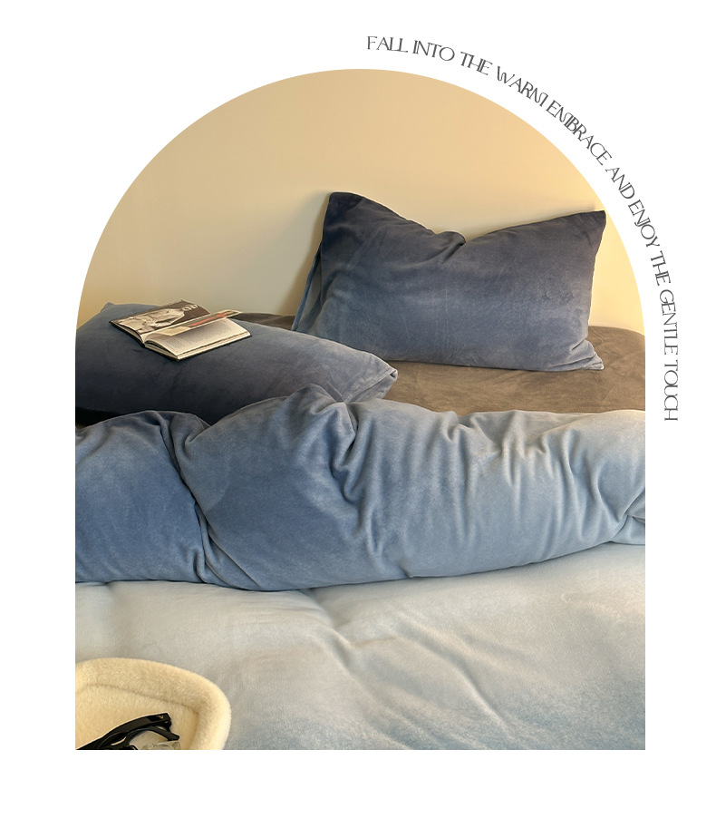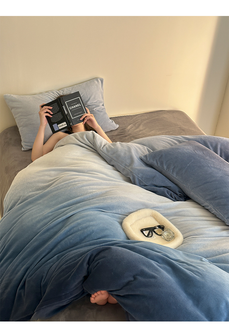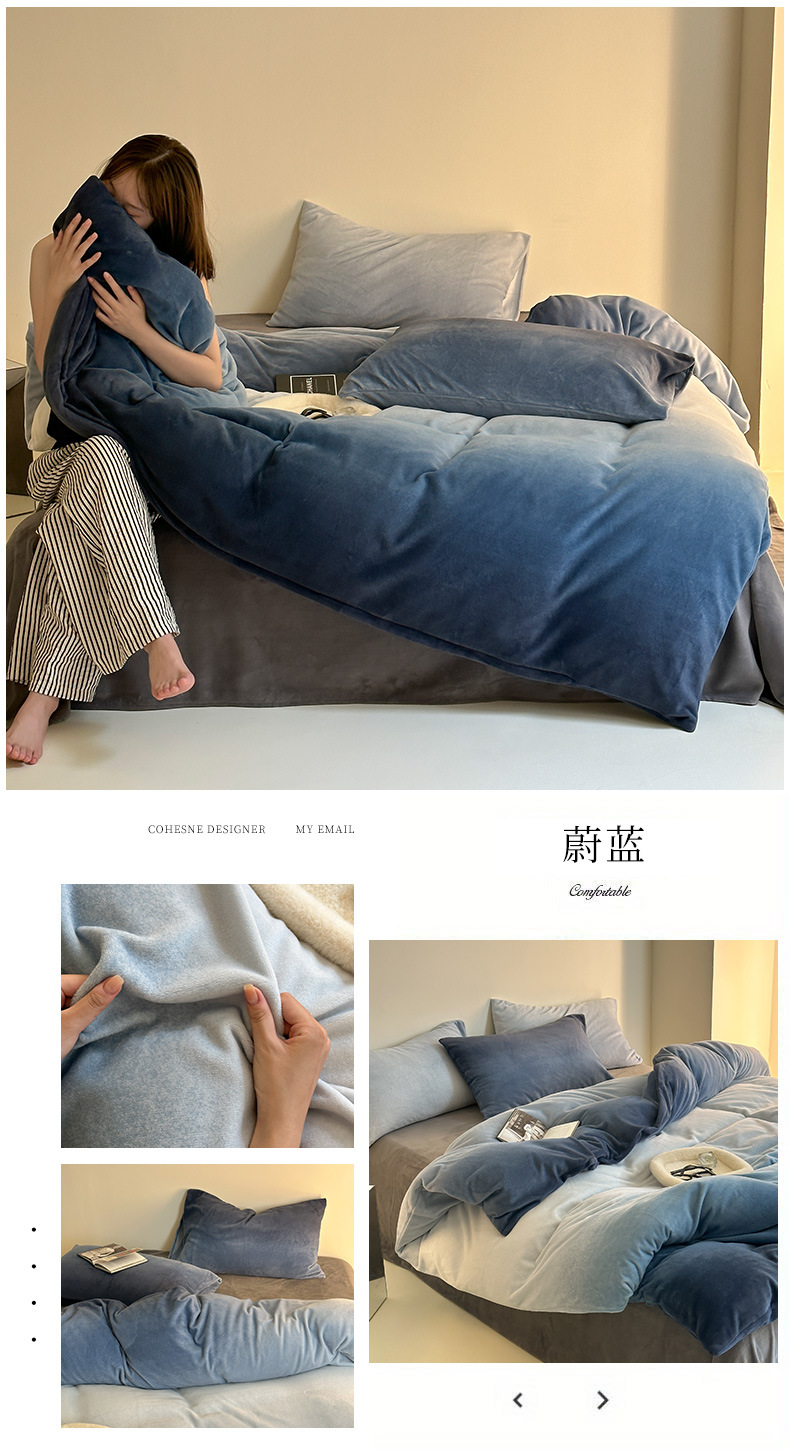 새로운 두꺼운 겨울 그라데이션 밀크 벨벳 4 피스 세트 단색 바람 침대 모자 4 피스 세트 Nantong 홈 섬유 도매스토어 가기