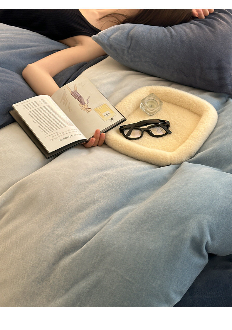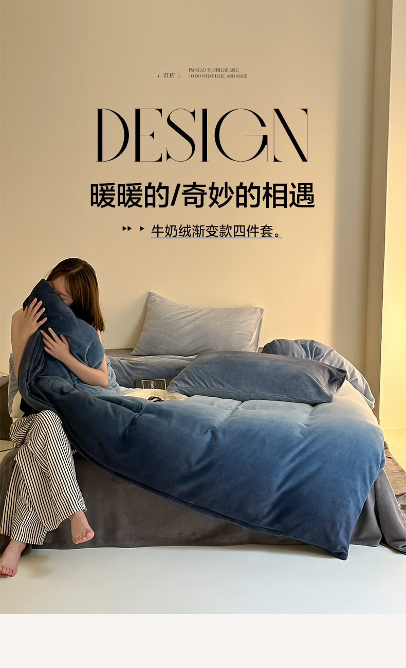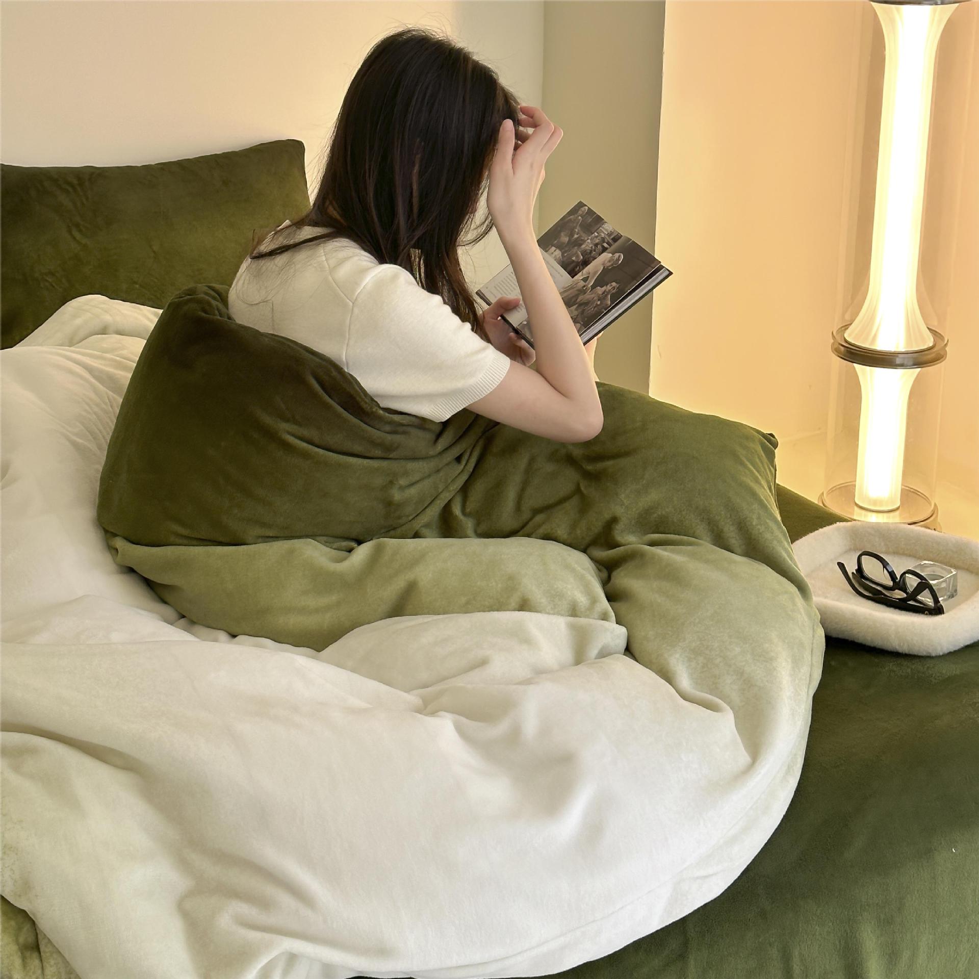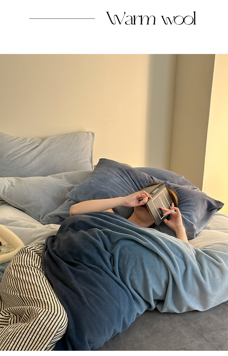 새로운 두꺼운 겨울 그라데이션 밀크 벨벳 4 피스 세트 단색 바람 침대 모자 4 피스 세트 Nantong 홈 섬유 도매스토어 가기
