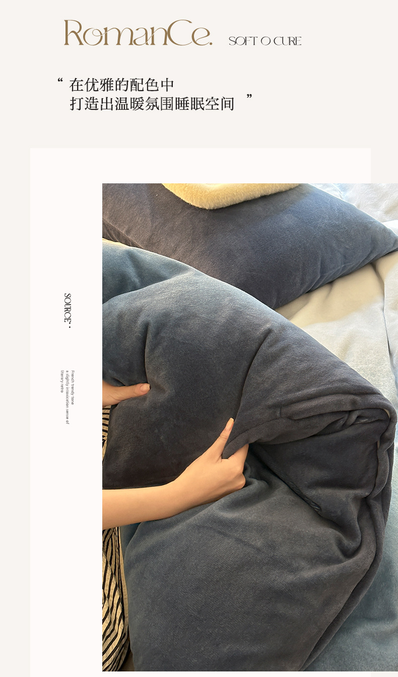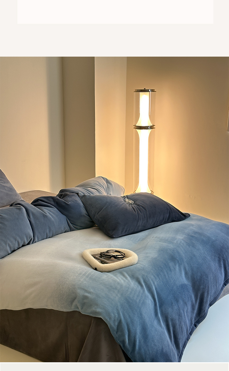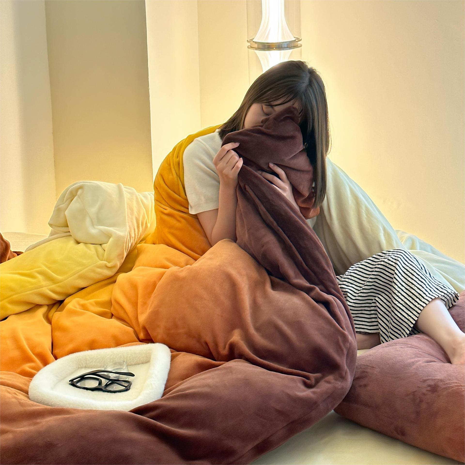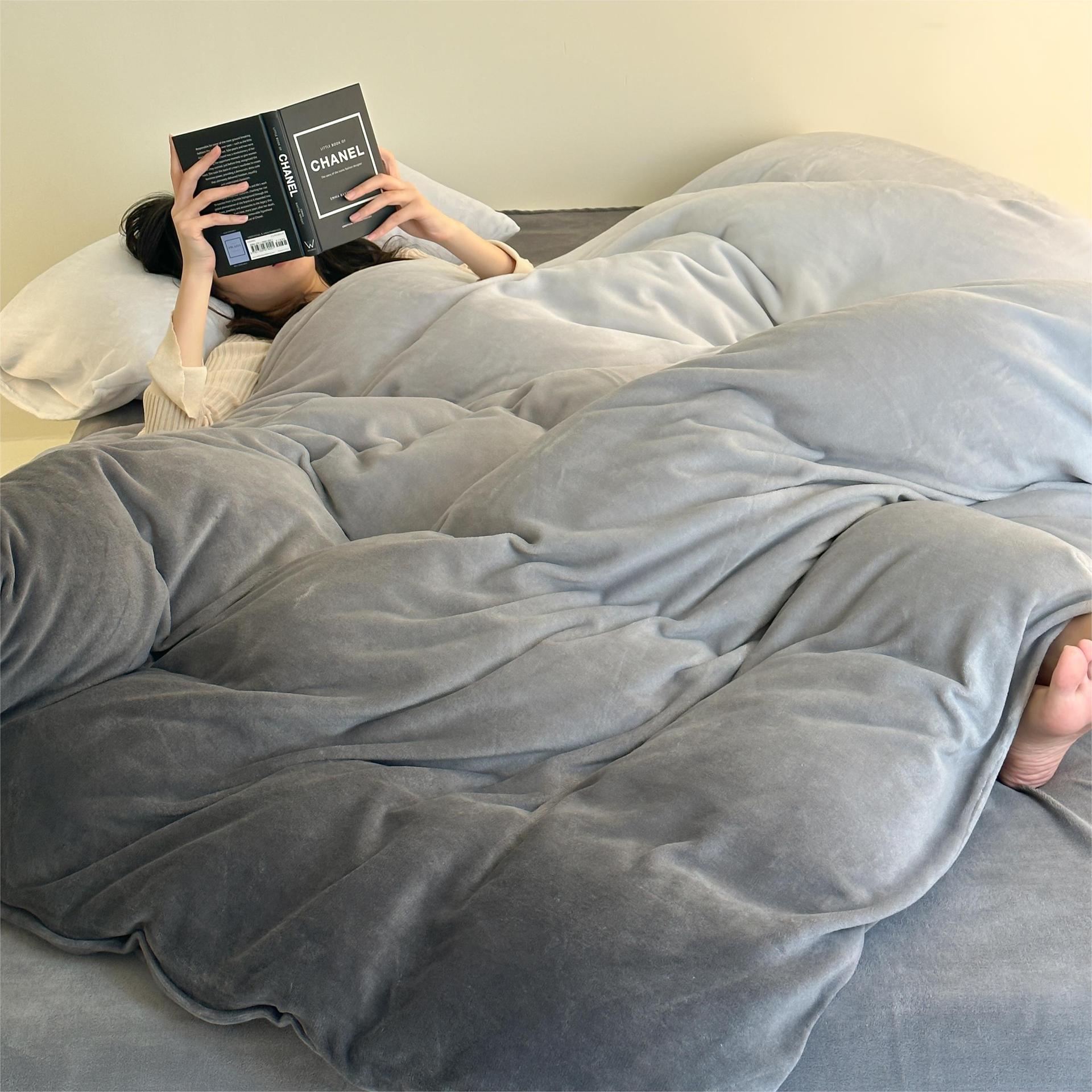새로운 두꺼운 겨울 그라데이션 밀크 벨벳 4 피스 세트 단색 바람 침대 모자 4 피스 세트 Nantong 홈 섬유 도매스토어 가기