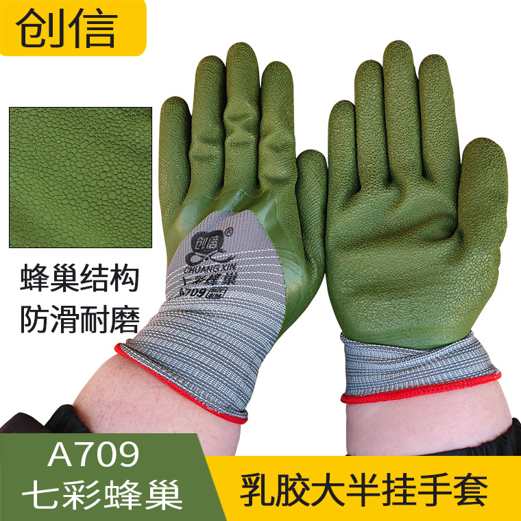 04588#创信A709七彩蜂巢灰纱绿乳胶大半挂手套_29.
