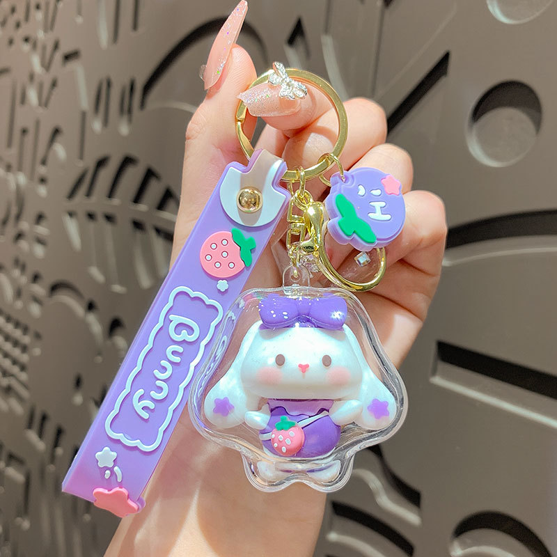 정품 아크릴 딸기 토끼 열쇠 고리 여자 귀여운 만화 자동차 열쇠 고리 가방 매달려 작은 선물 도매