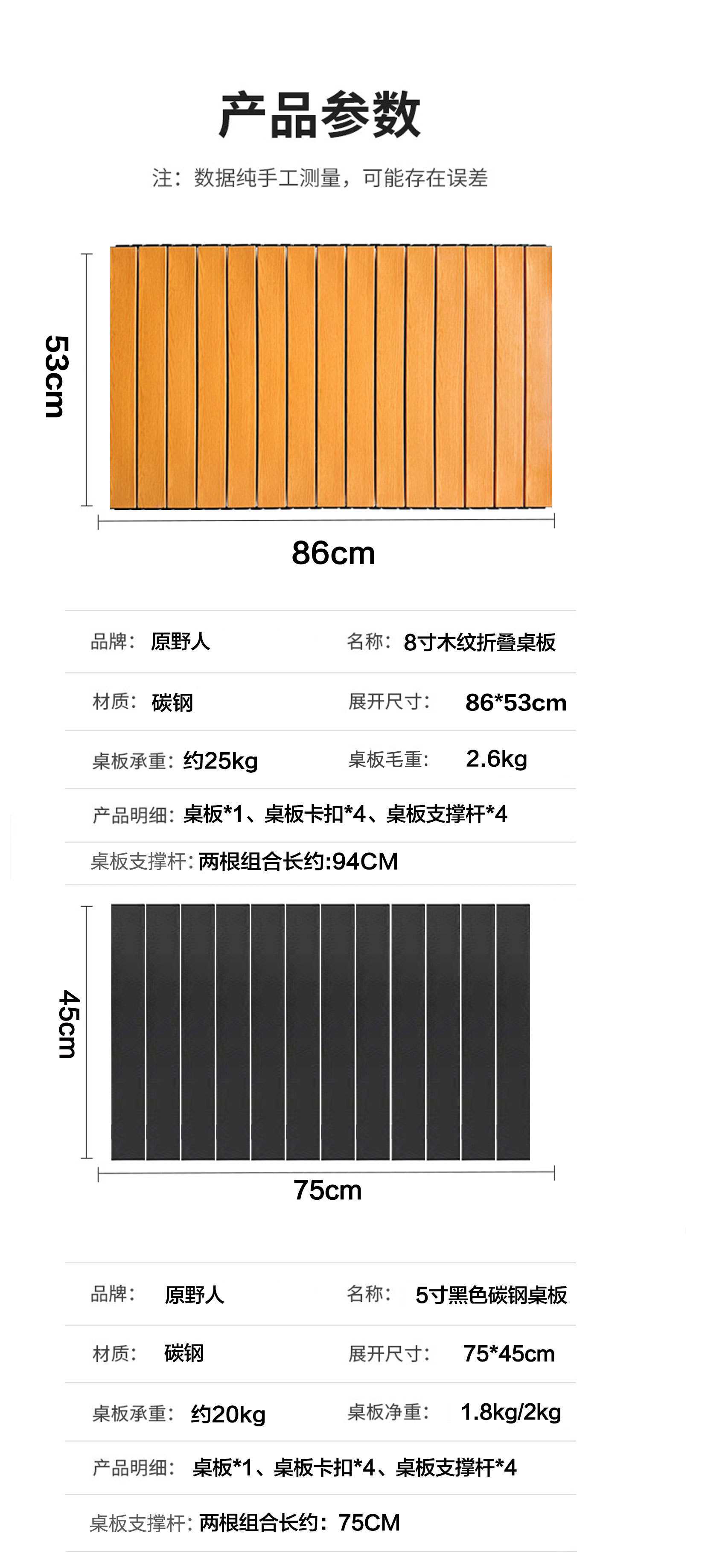 • 【평접이형 공용】【무광 우드결 색상】 8inch 탄소강 테이블 상판
