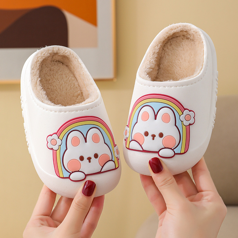 새로운 어린이 면 슬리퍼 발가락 구멍 신발 면 만화 따뜻한 야외 해변 방수 빛 바닥 아기 슬리퍼