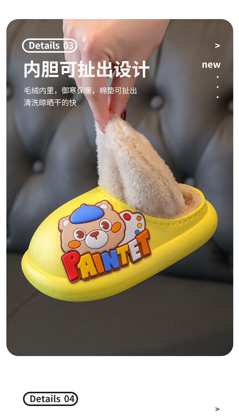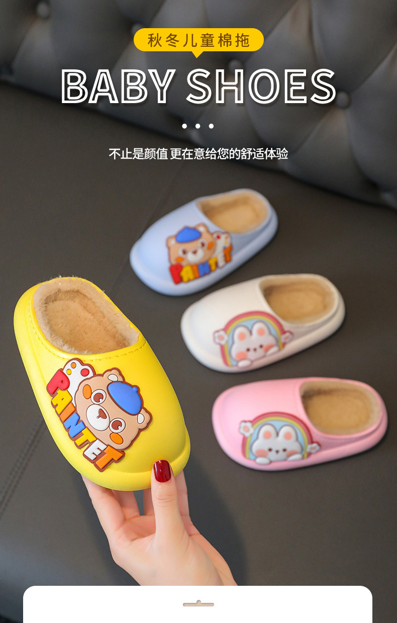 새로운 어린이 면 슬리퍼 발가락 구멍 신발 면 만화 따뜻한 야외 해변 방수 빛 바닥 아기 슬리퍼스토어 가기
