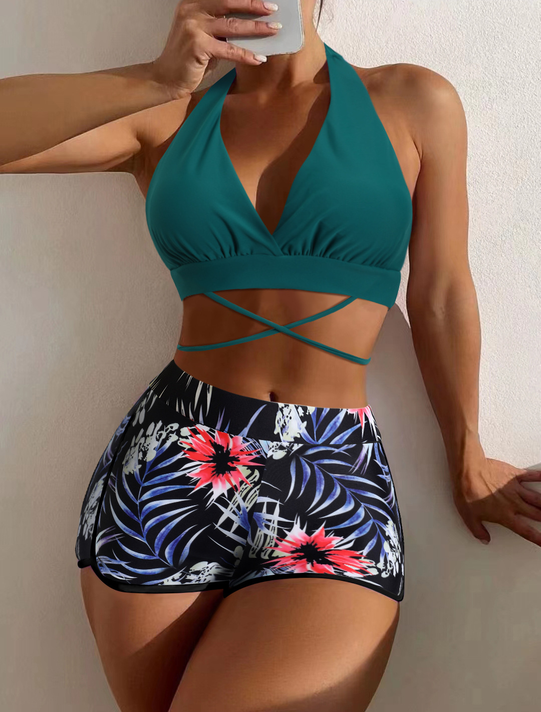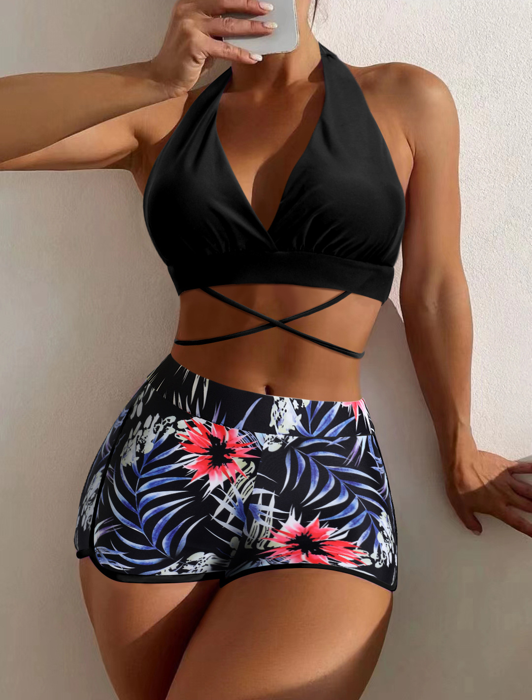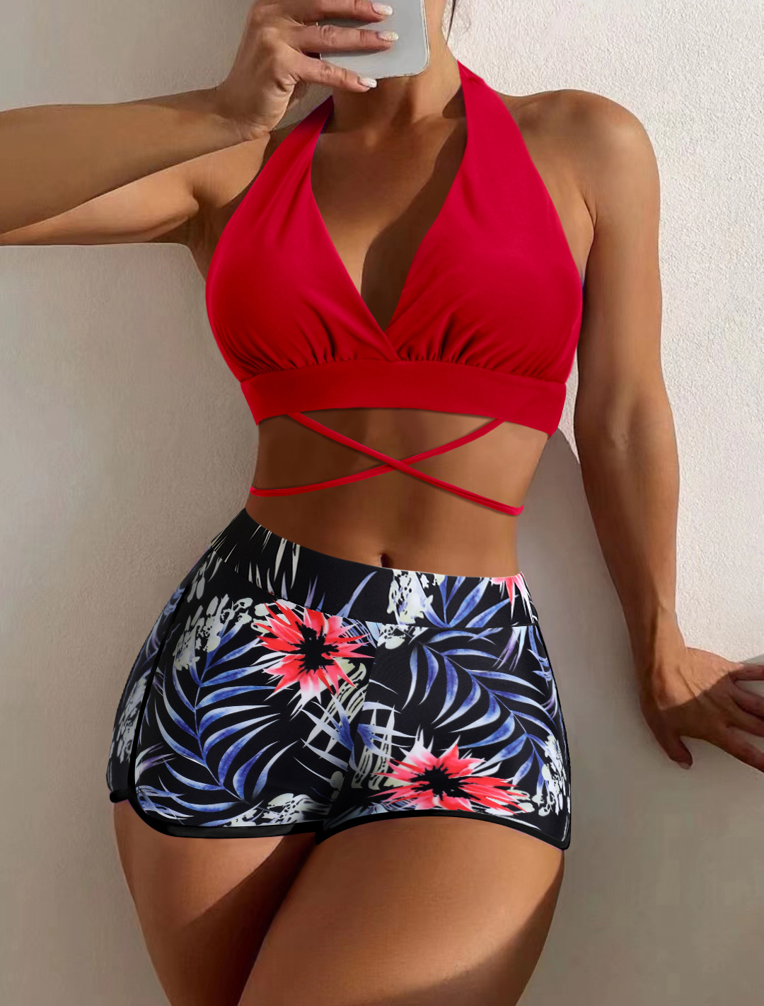 2023 새로운 유럽과 미국 아마존 크로스 보더 여성용 스플릿 수영복 스트랩 수집 비키니 재고