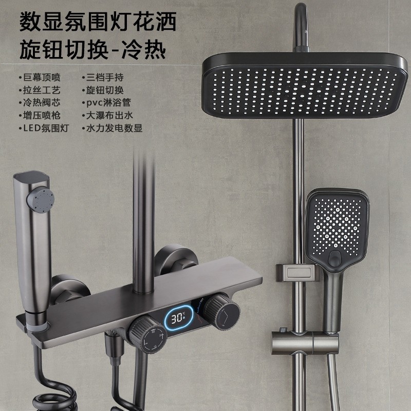 • (피아노 디지털 디스플레이 분위기 램프 4 기어) 총 그레이 샤워 세트