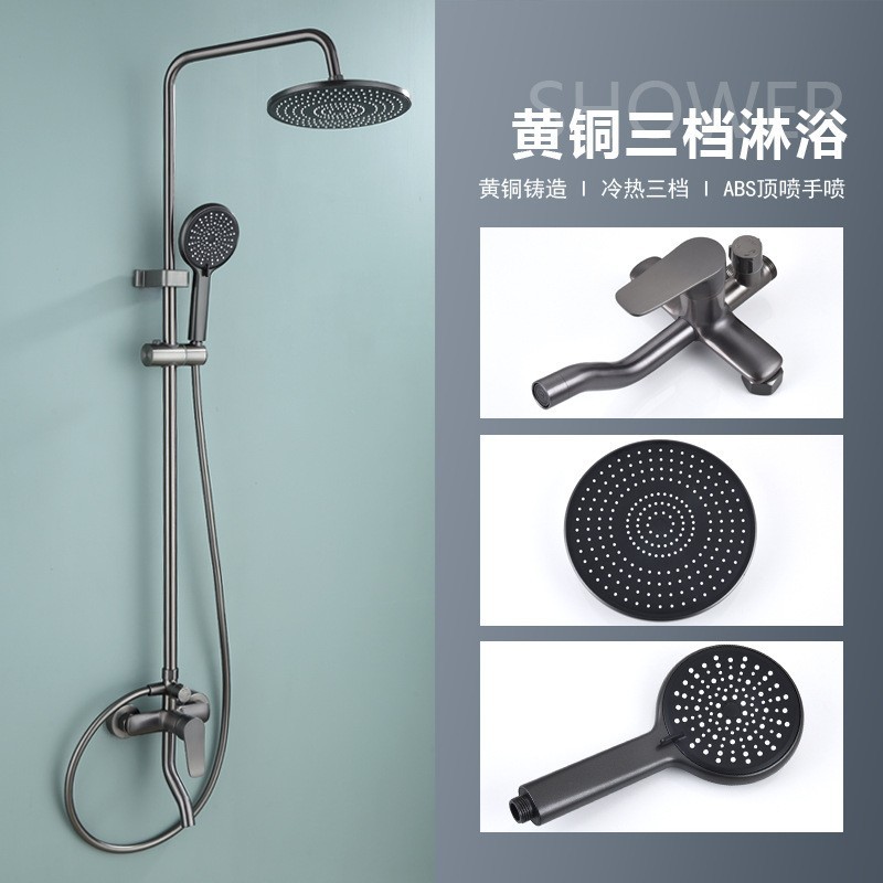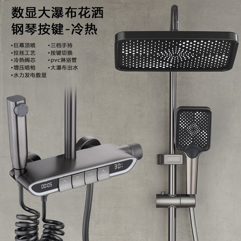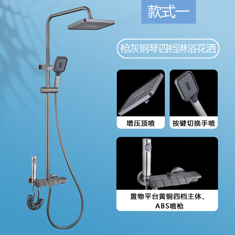 Tomahawk 모든 구리 샤워 항공 모함 샤워 세트 건 회색 피아노 버튼 가정 일정 온도 비 샤워 부스터 헤드