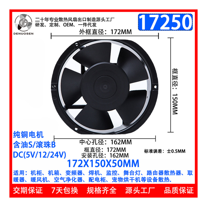 17cm DC 냉각 팬 12V24V 공작 기계 캐비닛 팬 17250 더블 볼 산업용 타원형 팬