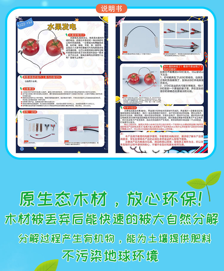 과학기술 소생산 DIY 수제 과일 배터리 발전 실험 아연 구리 소발명품 실물 재료 패키지스토어 가기