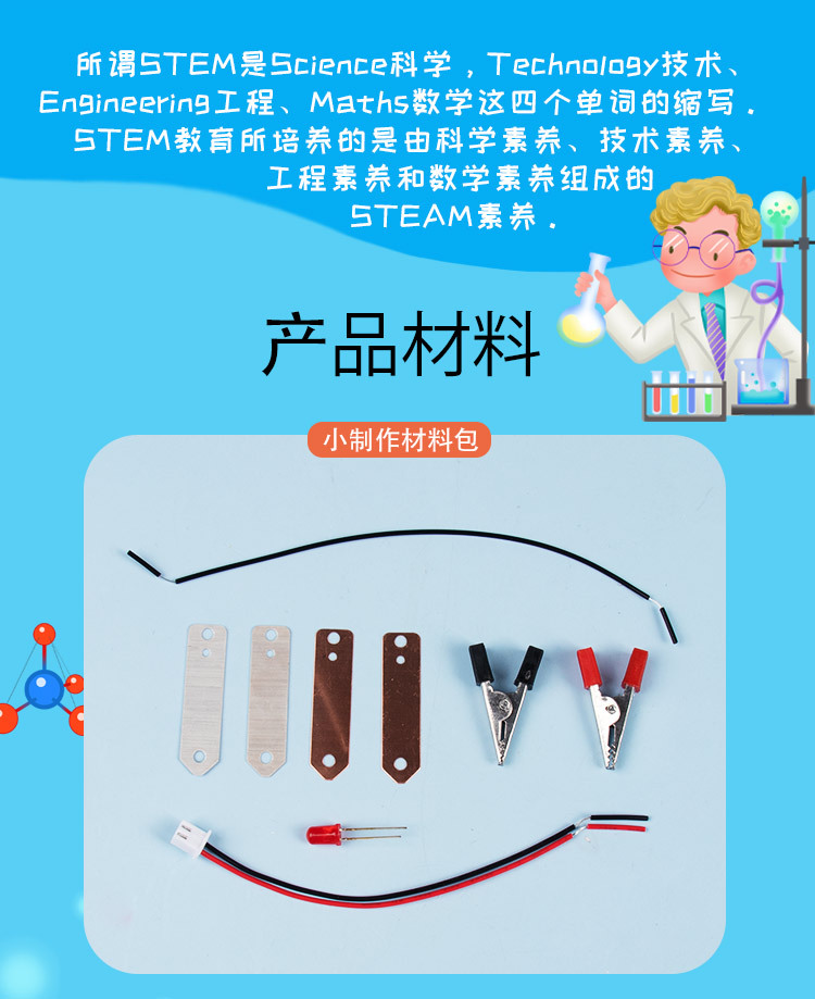 과학기술 소생산 DIY 수제 과일 배터리 발전 실험 아연 구리 소발명품 실물 재료 패키지
