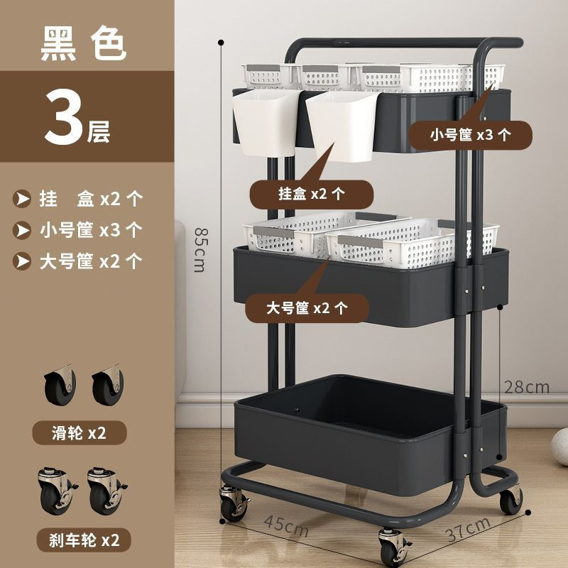 • 3 층 핸드 푸시 클래식 블랙 + 2 큰 3 작은 바구니 + 2 걸이 박스