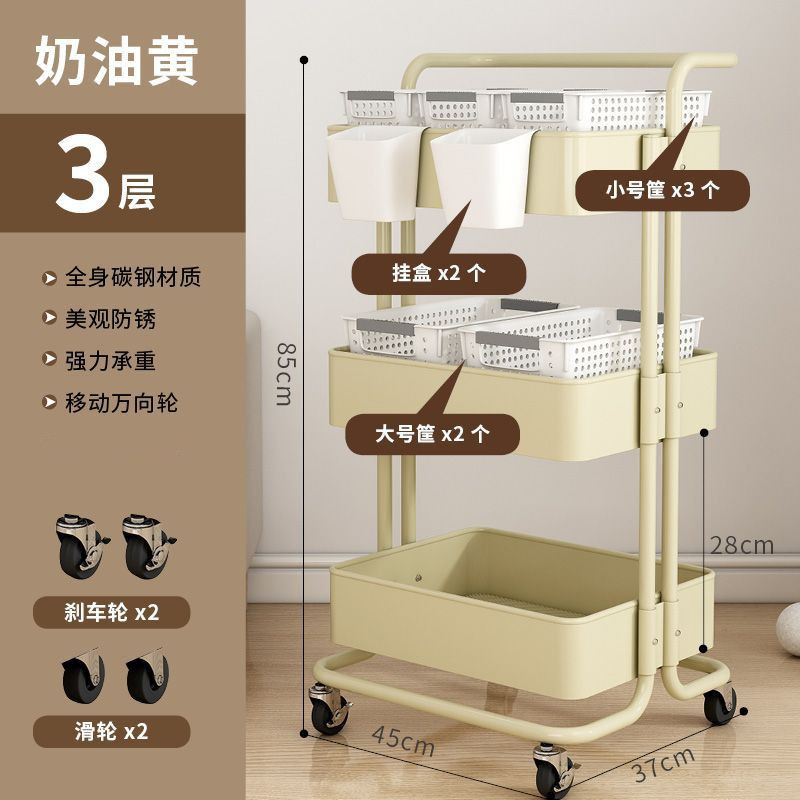 • 3 층 핸드 푸시 밀크 옐로우 + 2 큰 3 작은 바구니 + 2 교수형 상자