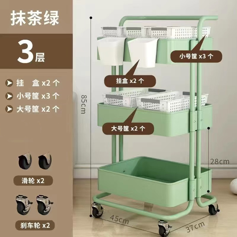 • 3 층 손으로 밀린 말차 녹색 + 2 큰 3 작은 바구니 + 2 개의 교수형 상자