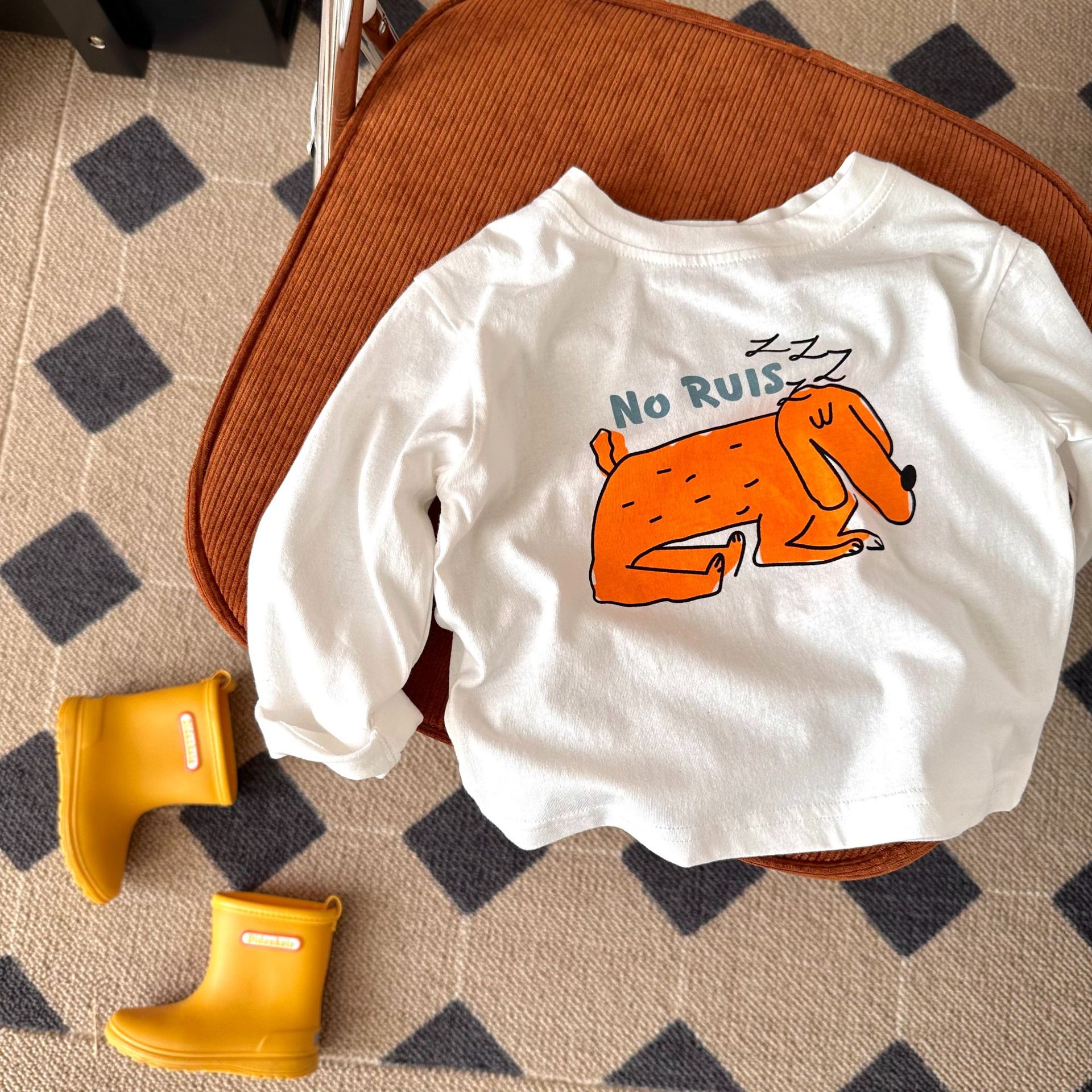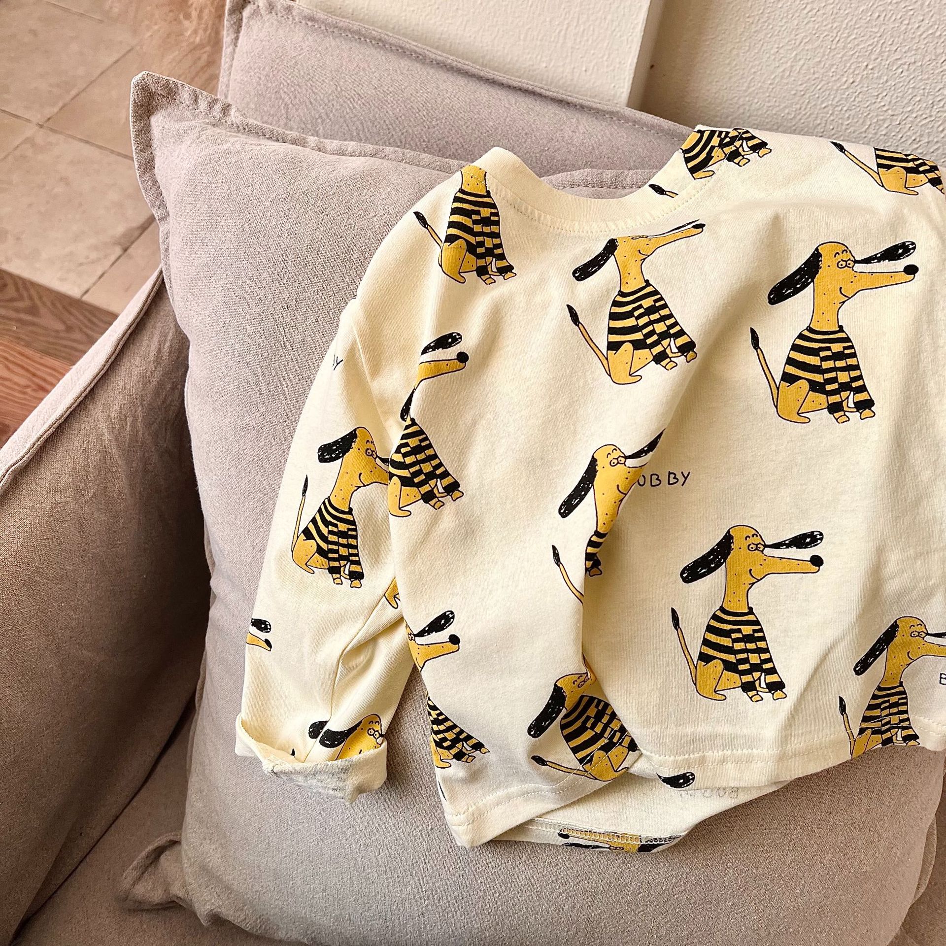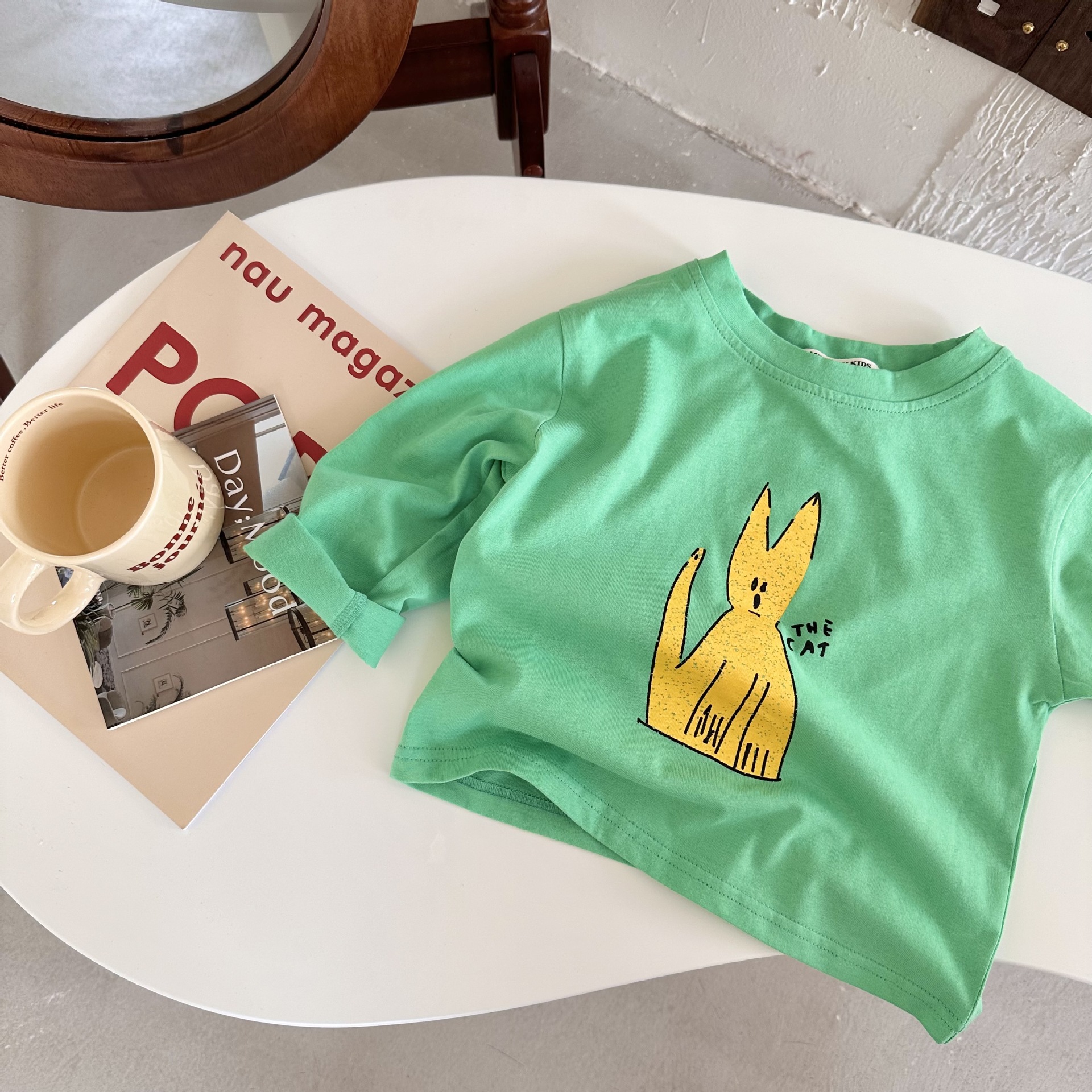 어린이 티셔츠 2023 squinting 가을 새로운 소년과 소녀 단색 만화 인쇄베이스 셔츠 아기 크루넥 티셔츠스토어 가기