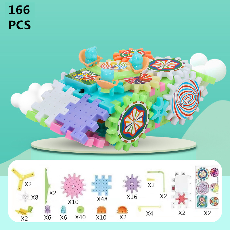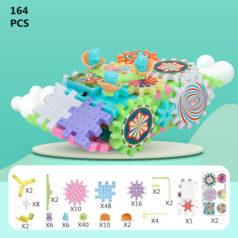 변수 전기 빌딩 블록 파라다이스 기어 회전 장난감 조립 3-6 세 남성과 여성을위한 대형 입자 퍼즐 세트 조립스토어 가기