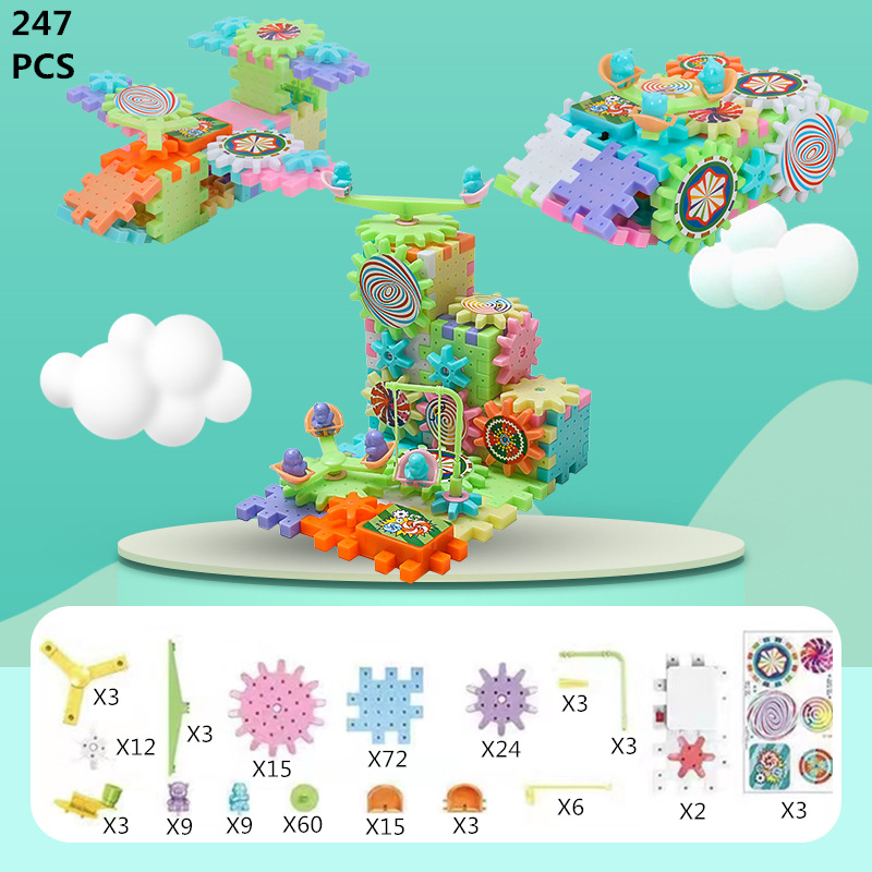 변수 전기 빌딩 블록 파라다이스 기어 회전 장난감 조립 3-6 세 남성과 여성을위한 대형 입자 퍼즐 세트 조립