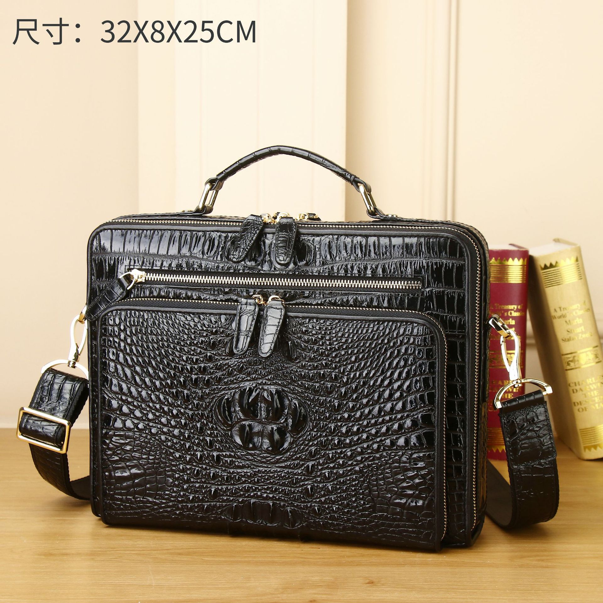 클래식 정품 가죽 악어 패턴 핸드백 대용량 남성 서류 가방 비즈니스 컴퓨터 가방 유행 남성 가방 도매