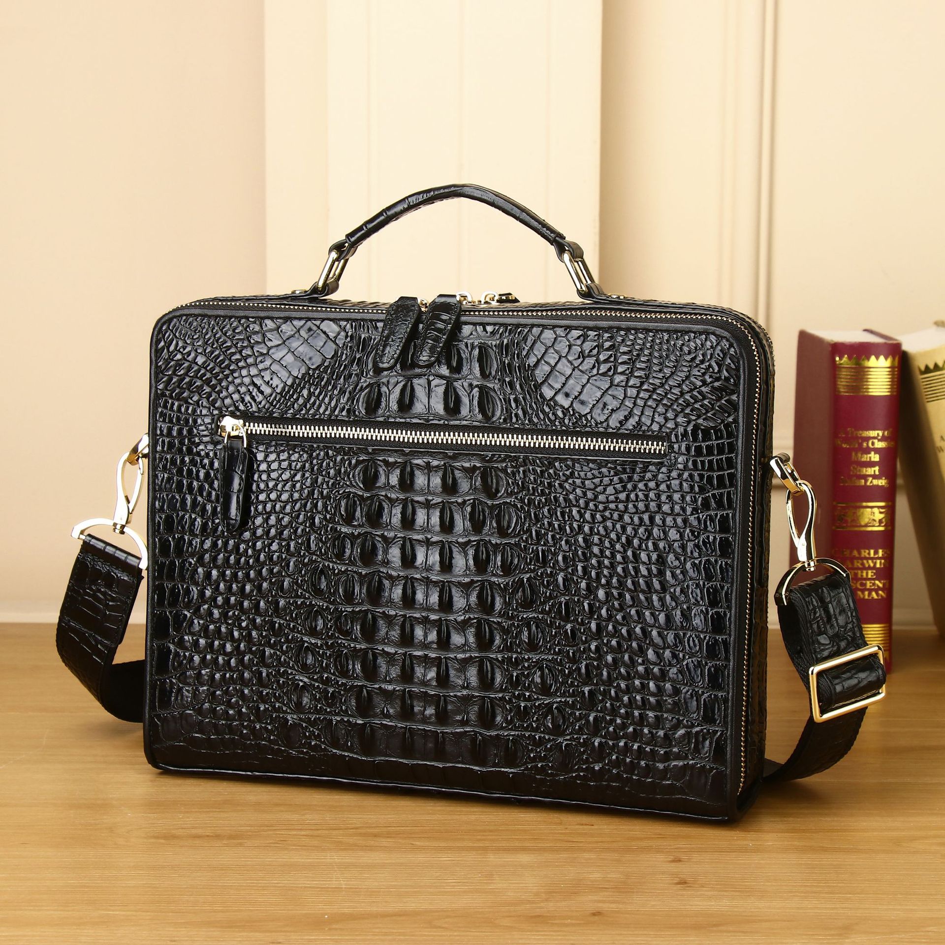 클래식 정품 가죽 악어 패턴 핸드백 대용량 남성 서류 가방 비즈니스 컴퓨터 가방 유행 남성 가방 도매스토어 가기