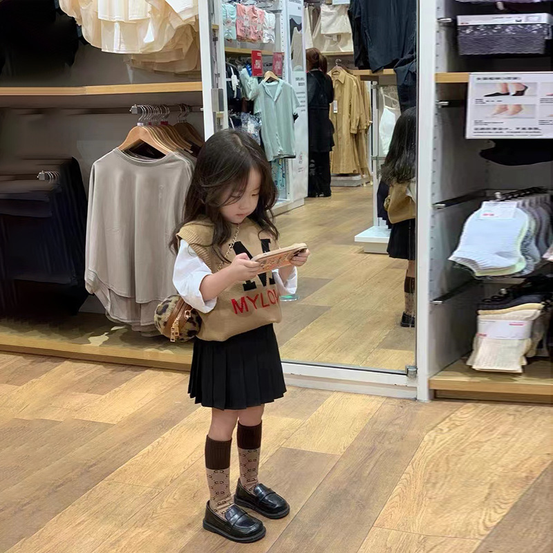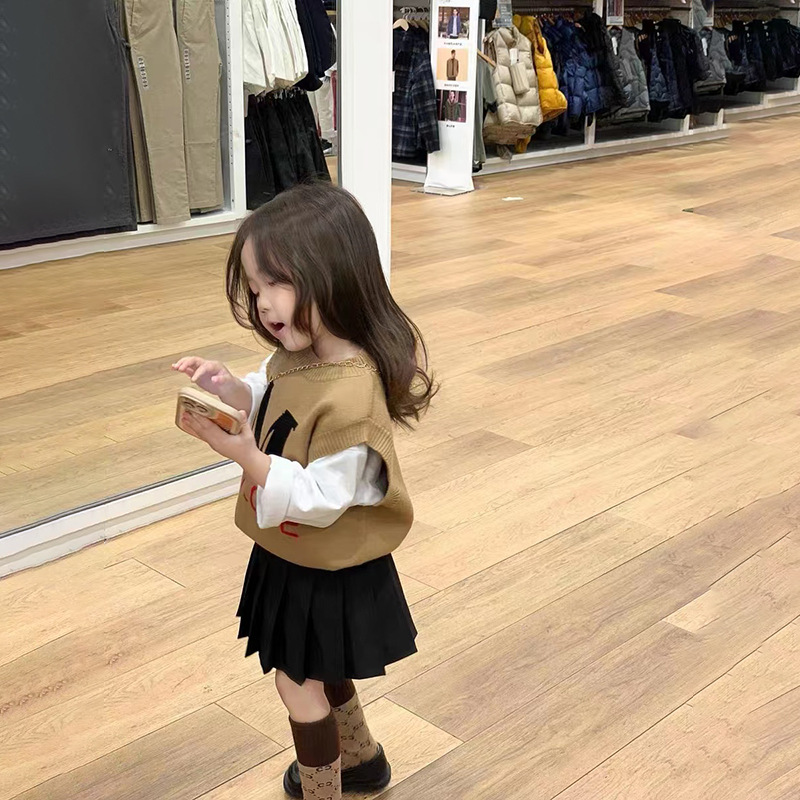 봄과 가을 새로운 여자 한국 스타일 서양 스타일 아카데믹 스타일 스웨터 조끼 캐주얼 화이트 긴팔 모든 매치 플리츠 스커트스토어 가기