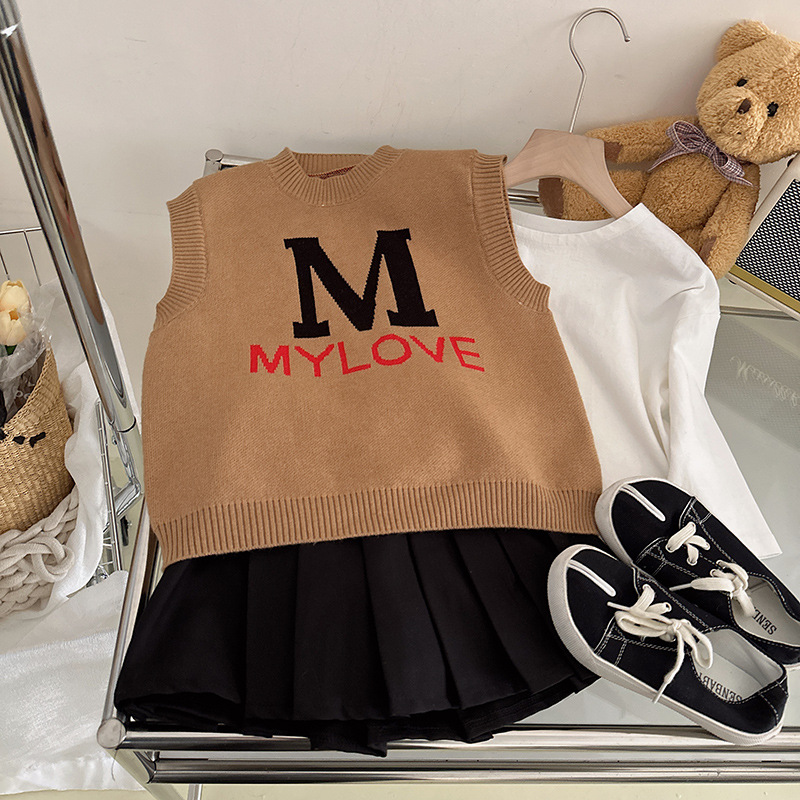 봄과 가을 새로운 여자 한국 스타일 서양 스타일 아카데믹 스타일 스웨터 조끼 캐주얼 화이트 긴팔 모든 매치 플리츠 스커트