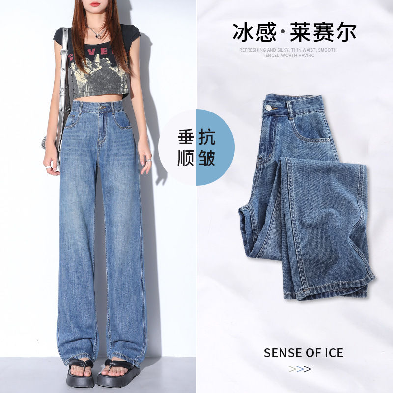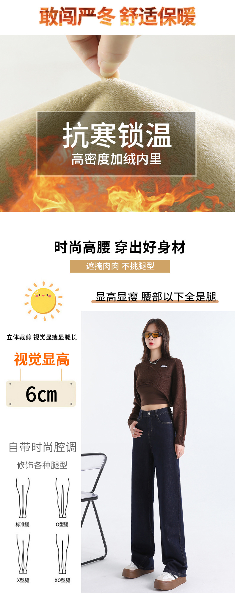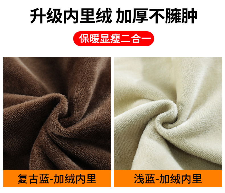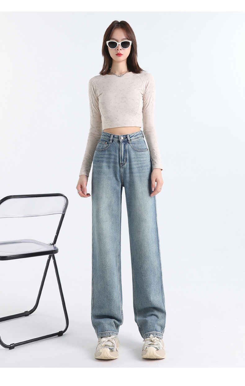 여성용 가을 겨울 신상 넓은 다리 청바지, 벨벳 안감, 두꺼운 고허리, 작은 키에도 잘 어울리는 루즈핏 스트레이트 바지스토어 가기