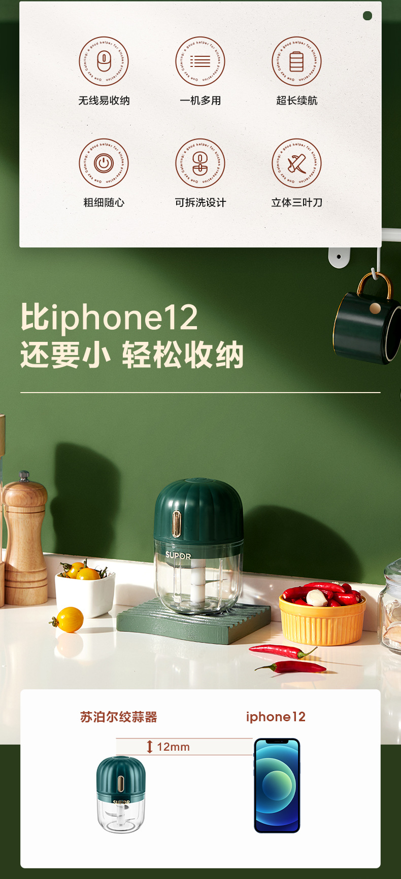 마늘 분쇄기 작은 식품 보충 기계 고기 분쇄기 마늘 분쇄기 무선 전기 교반 요리 기계 SDS001스토어 가기