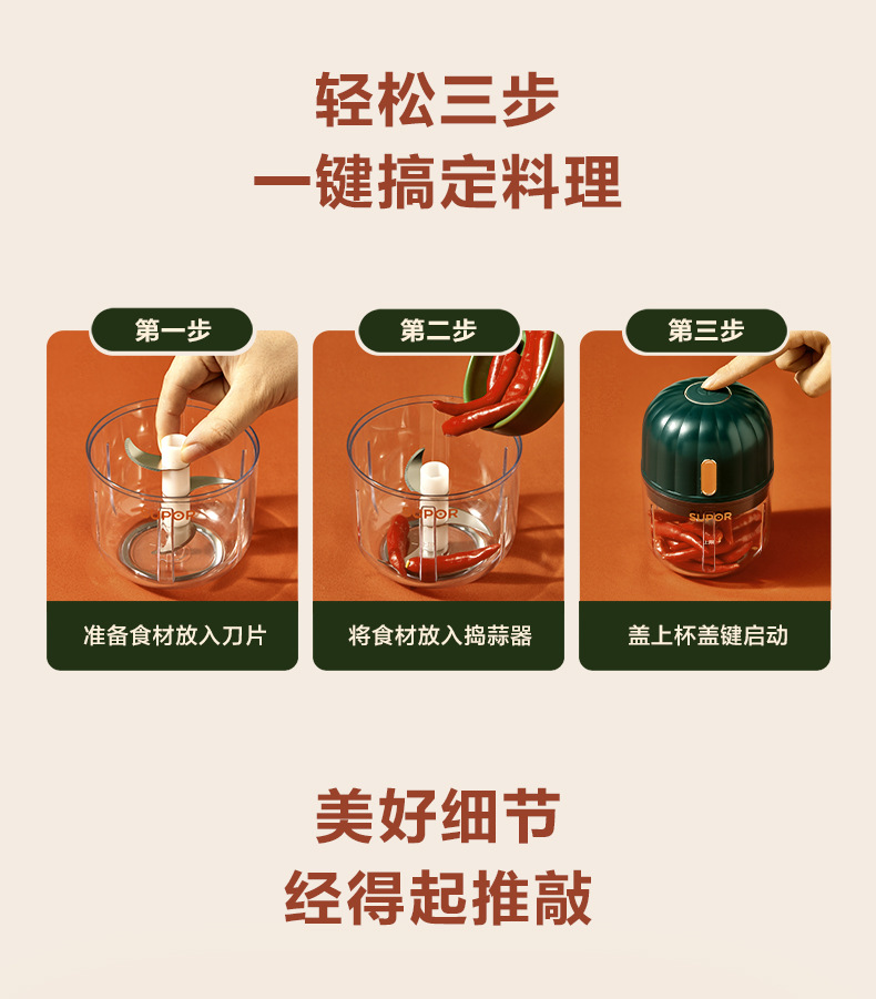 마늘 분쇄기 작은 식품 보충 기계 고기 분쇄기 마늘 분쇄기 무선 전기 교반 요리 기계 SDS001