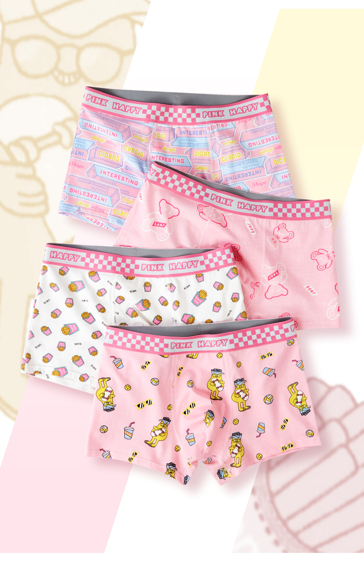 도매 핑크 귀여운 남성용 속옷, 코마사 순면 항균 남성 사각팬티, 트렌디한 플랫보이즈 빅사이즈 팬티스토어 가기