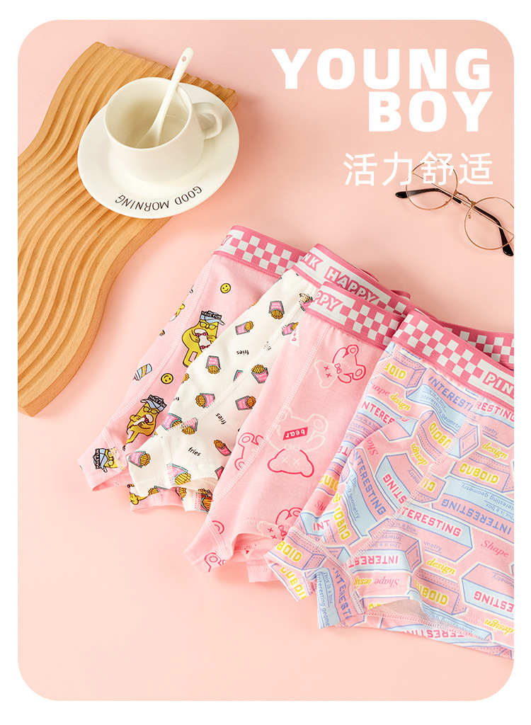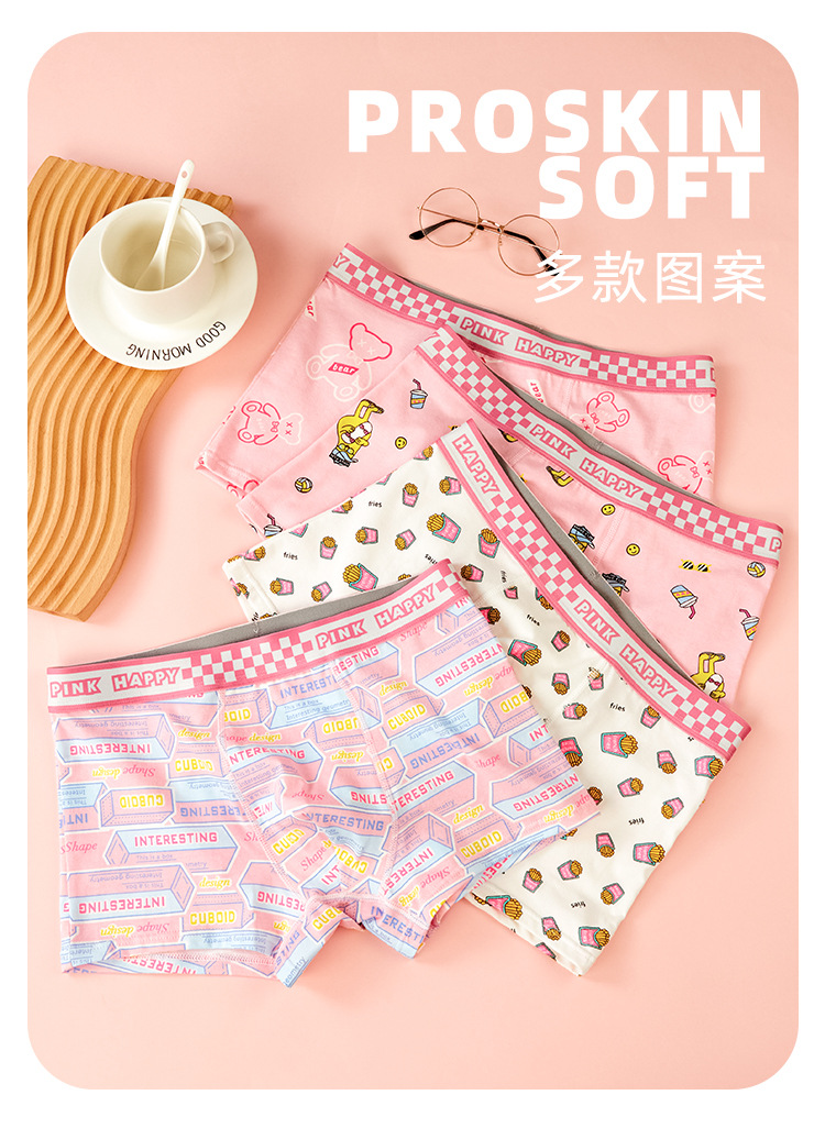 도매 핑크 귀여운 남성용 속옷, 코마사 순면 항균 남성 사각팬티, 트렌디한 플랫보이즈 빅사이즈 팬티