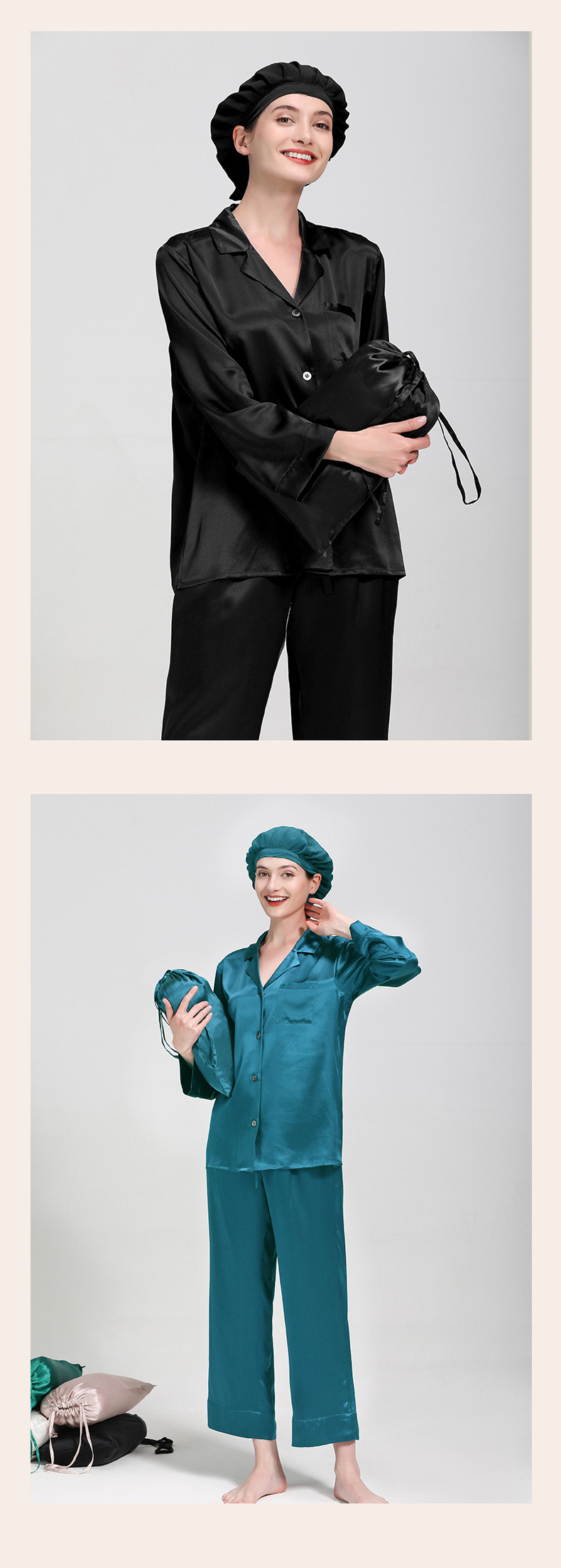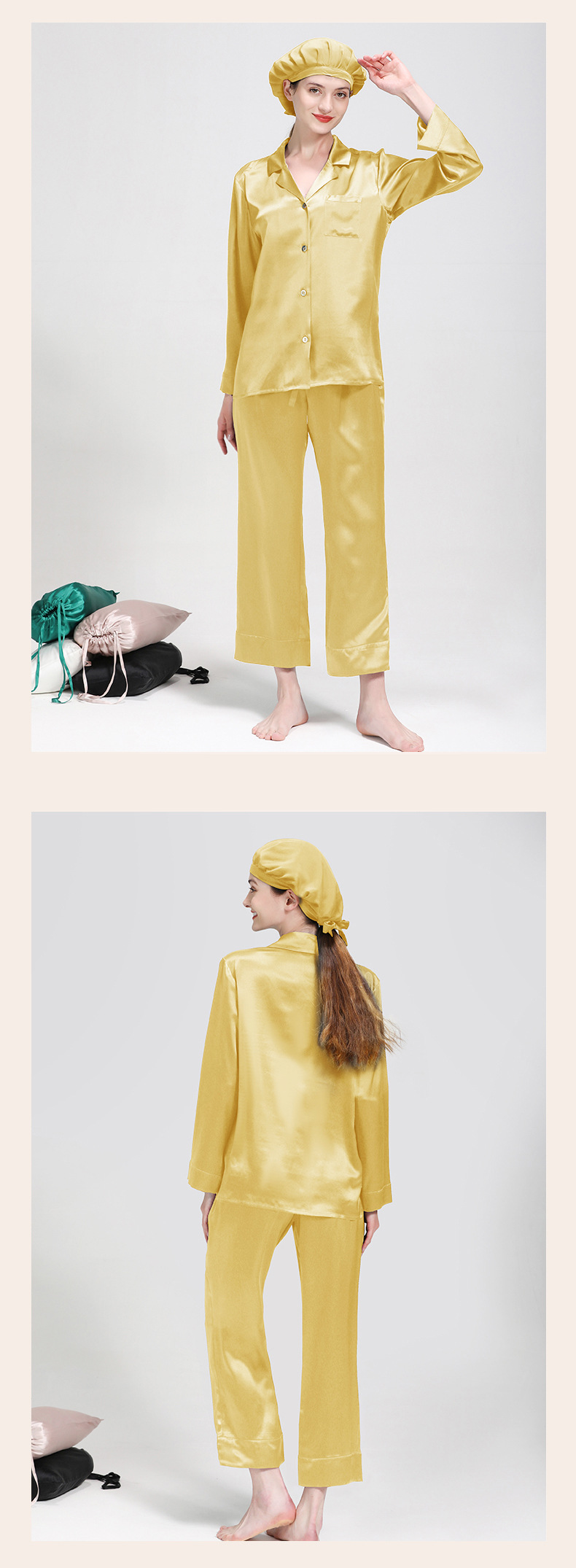 25mm 헤비급 실크 잠옷 여성용 2025 봄 여름 100% 뽕나무 실크 긴팔 긴바지 세트 고급 홈웨어