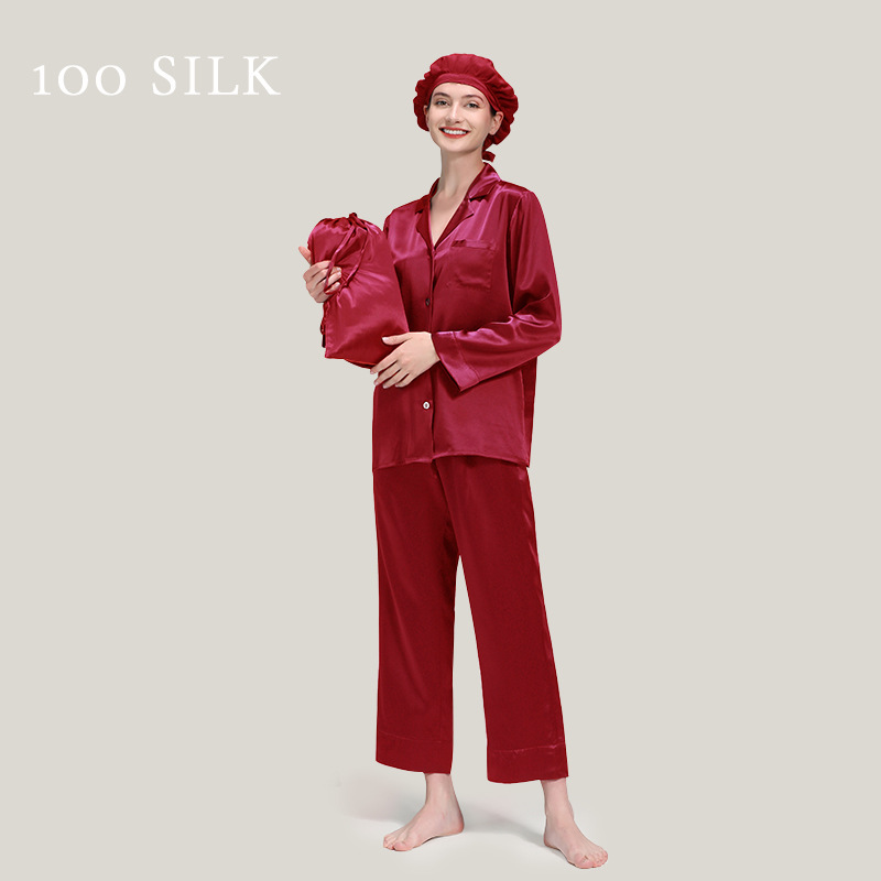 25mm 헤비급 실크 잠옷 여성용 2025 봄 여름 100% 뽕나무 실크 긴팔 긴바지 세트 고급 홈웨어스토어 가기