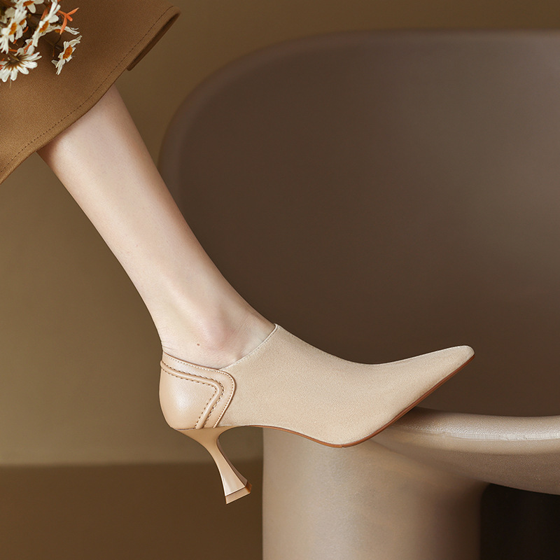 여성용 양가죽 하이힐 싱글 슈즈 2024 가을 신상 프렌치 스타일 뾰족코 얇은 굽 유럽풍 우아한 앵클 부츠