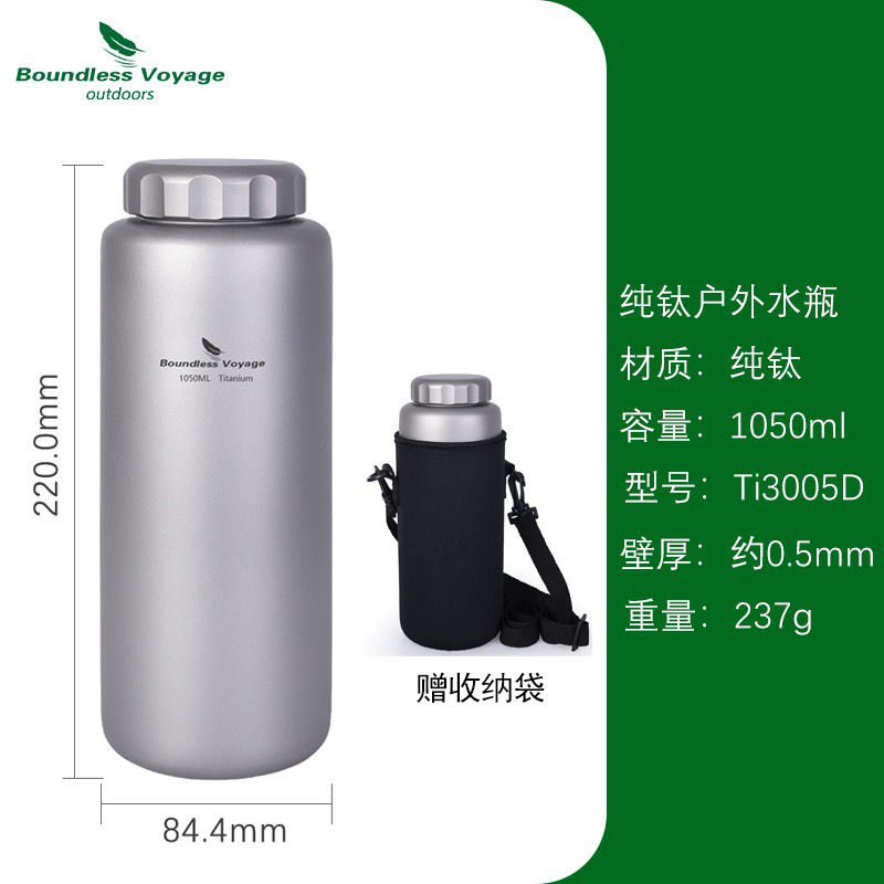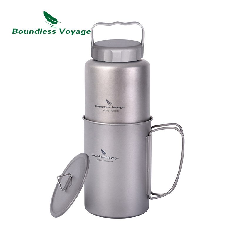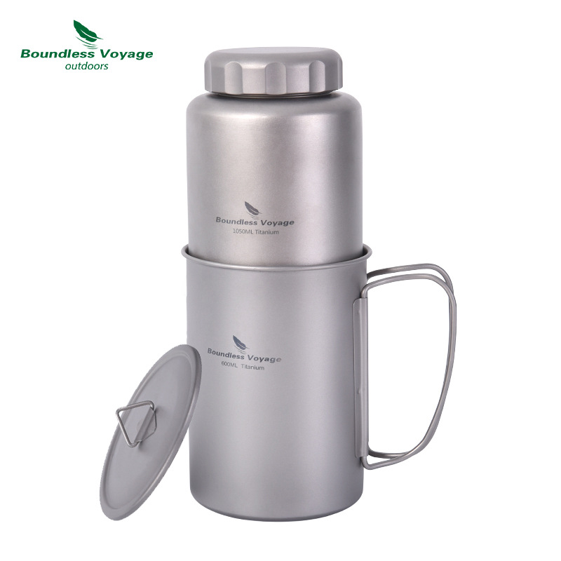Biwei 순수 티타늄 티타늄 컵 물병 야외 대용량 휴대용 캠핑 주전자 등산 냄비 단일 레이어 캠핑 티 컵스토어 가기